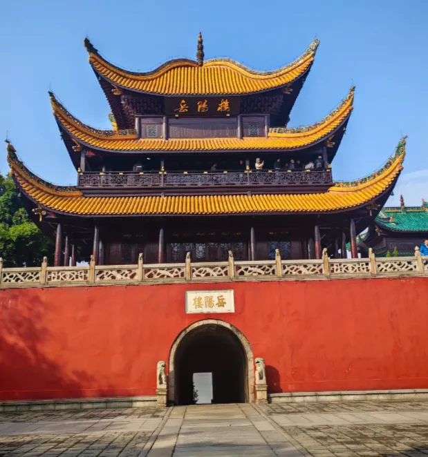 刚下车,建议从岳阳楼开始。别以为“名胜古迹”都疏离冷清,这里的楼,旧檐角沾泥,木门吱吱响,一楼一景。登上去,风透过窗棂绕进来,看洞庭湖铺展开,江水无言。远方有渔船点点,近处有孩童跳皮筋。不是必须要远眺or怀古,而是这里自带一种让人安静下来的力量。