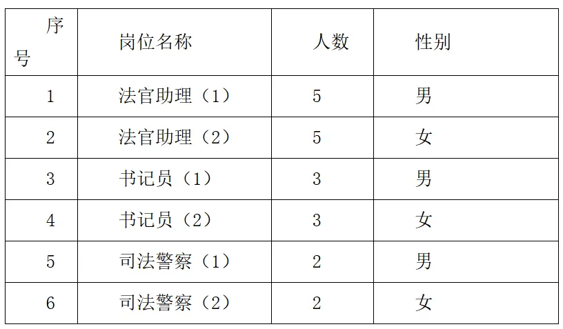 书记员岗位要求:年龄在18周岁以上、35周岁以下(1990年2月至2008年2月期间出生),具有法学类本科及以上学历。