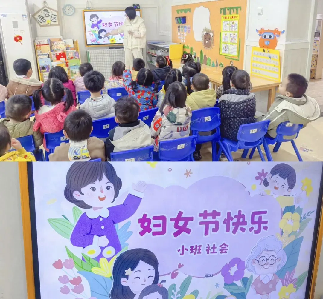 在“三八妇女节”来临之际,老师们抓住节日契机,紧贴幼儿实际生活,开展了相关主题活动,通过图片、绘本故事、视频等,让孩子们了解“三八妇女节”的故事及意义,理解各行各业妇女们对家庭和社会的付出,同时感受亲情,学会感恩以及表达爱意,让感恩的种子在孩子们心中生根、发芽、开花,增进与长辈之间的感情。