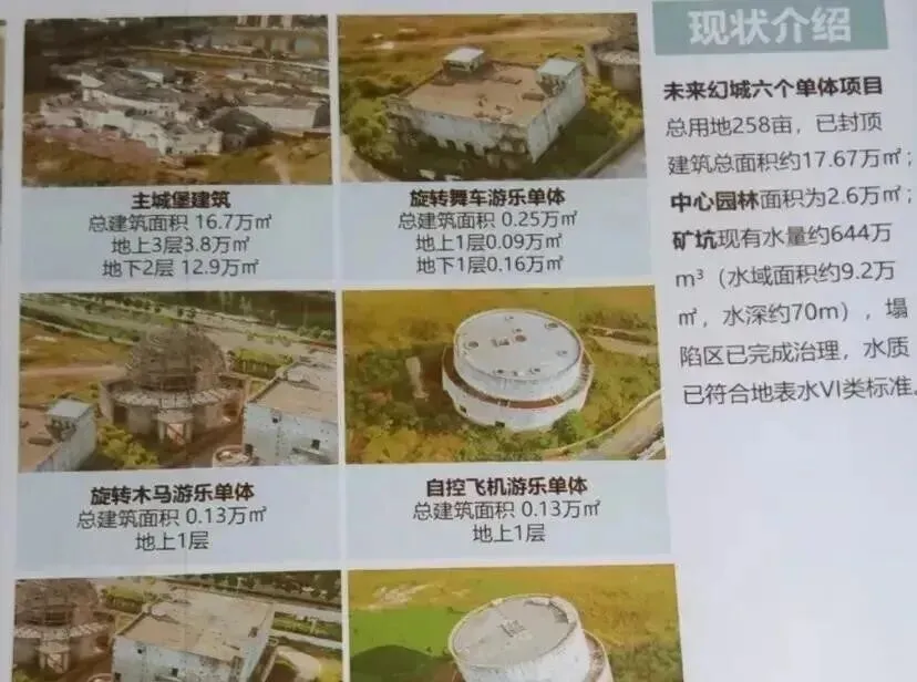 矿坑治理也已完成,现有水量约644万m³,水质达标,主城堡、旋转木马、儿童木偶剧场等游乐单体都已初具规模。