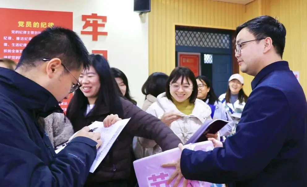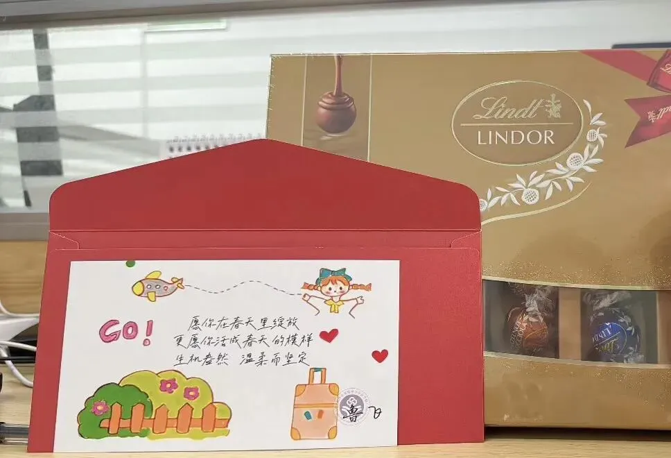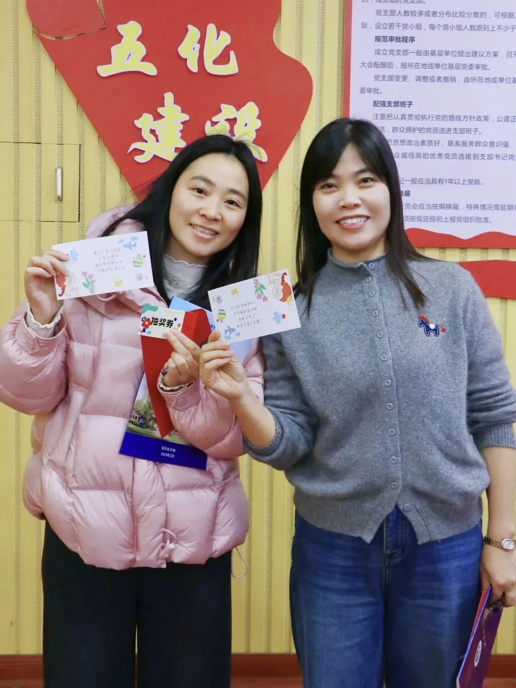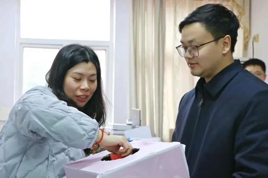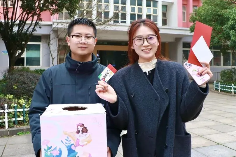 活动当天,由工会代表与学校行政老师组成的“暖心小分队”走进各办公室,带来了精心设计的抽奖箱。这个为节日特别定制的小箱精美别致,里面装满了特制的节日贺卡和奖券。女教职工们怀着期待与喜悦,亲手从抽奖箱中抽取属于自己的那一份惊喜——每一张贺卡都写满了专属祝福,每一份礼品都承载着学校的温情,感谢她们在教育教学岗位上的辛勤付出与默默奉献。现场洋溢着喜悦与感动,节日的仪式感在这一刻变得具体而温暖。