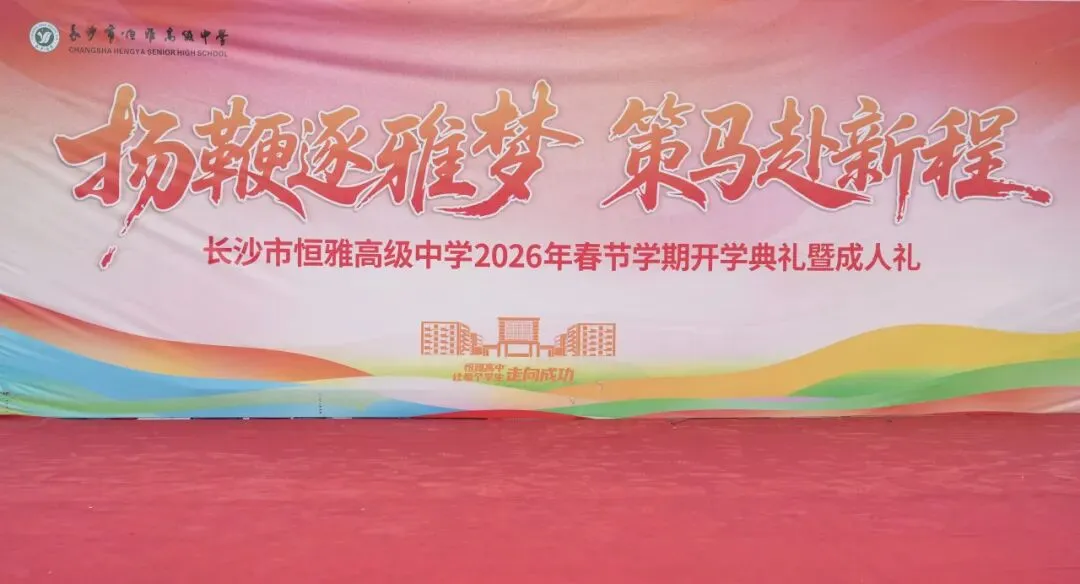 扬鞭逐雅梦,策马赴新程。本次开学典礼暨成人礼活动,是新学期的启航仪式也是青春的加冕盛典,让每一位恒雅学子真切体会到成长的重量、读懂奋斗的意义,更让全校师生心往一处想、劲往一处使,凝聚起同心同行、温暖奋进的磅礴力量。愿高三学子以成人之姿扛起时代责任,以梦为帆、以勤为桨,在高考冲刺的路上坚定前行、乘风破浪,不负韶华勇创佳绩;愿全体恒雅少年不负春日好时光,在校园里脚踏实地、向阳生长,以青春之我筑青春之梦,在恒雅这片温暖的沃土上,书写独属于自己的青春答卷与精彩篇章。