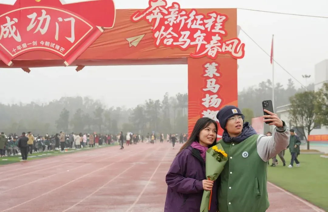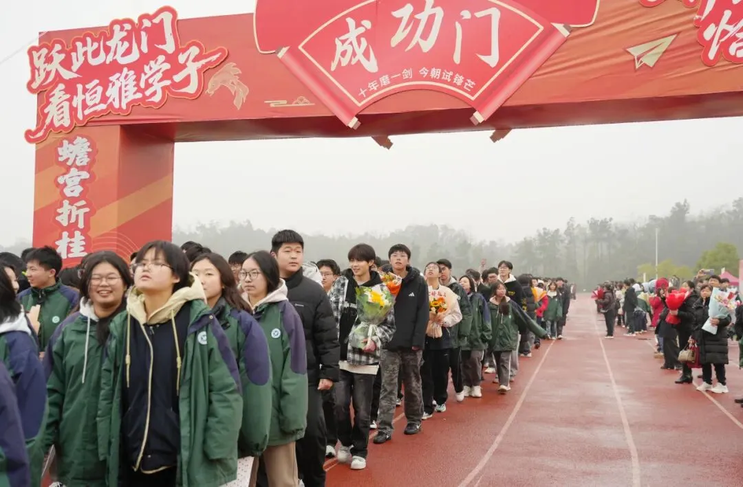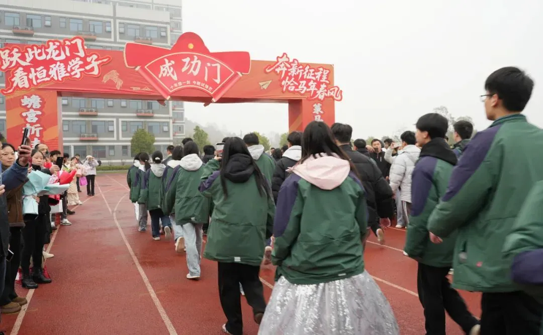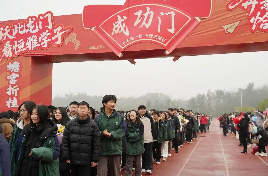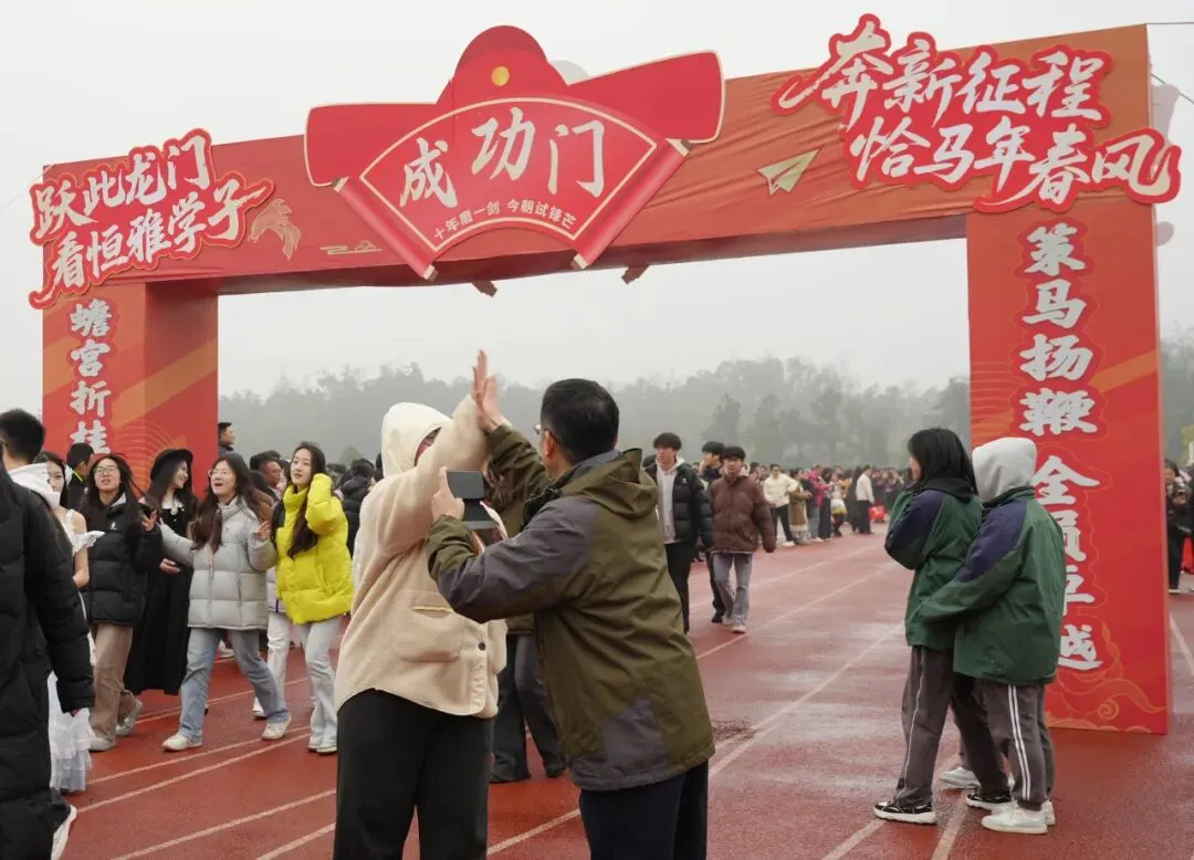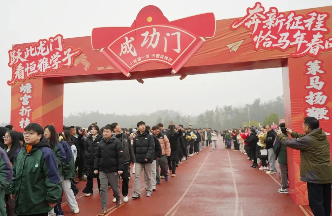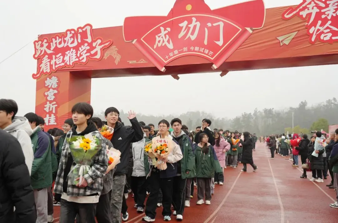 高三学子昂首挺胸、步伐坚定地跨越“成功门”。门两侧,校领导、老师们与家长们并肩夹道而立,高声加油呐喊,与学子们一一击掌鼓劲,还为他们送上满载期许的祝福礼物;一旁的高一、高二学弟学妹们掌声雷动、欢呼声此起彼伏,汇成最温暖的助威声浪。