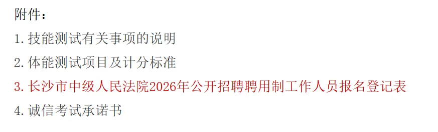本次公开招聘采取网上报名的方式。请应聘人员登录http://www.mdleader.cn/BaoMing/2026CSFY/,进入“长沙市中级人民法院2026年公开招聘聘用制工作人员报名系统”,按要求填报信息并上传电子照片和应聘岗位所需的相关材料原件的清晰图片。