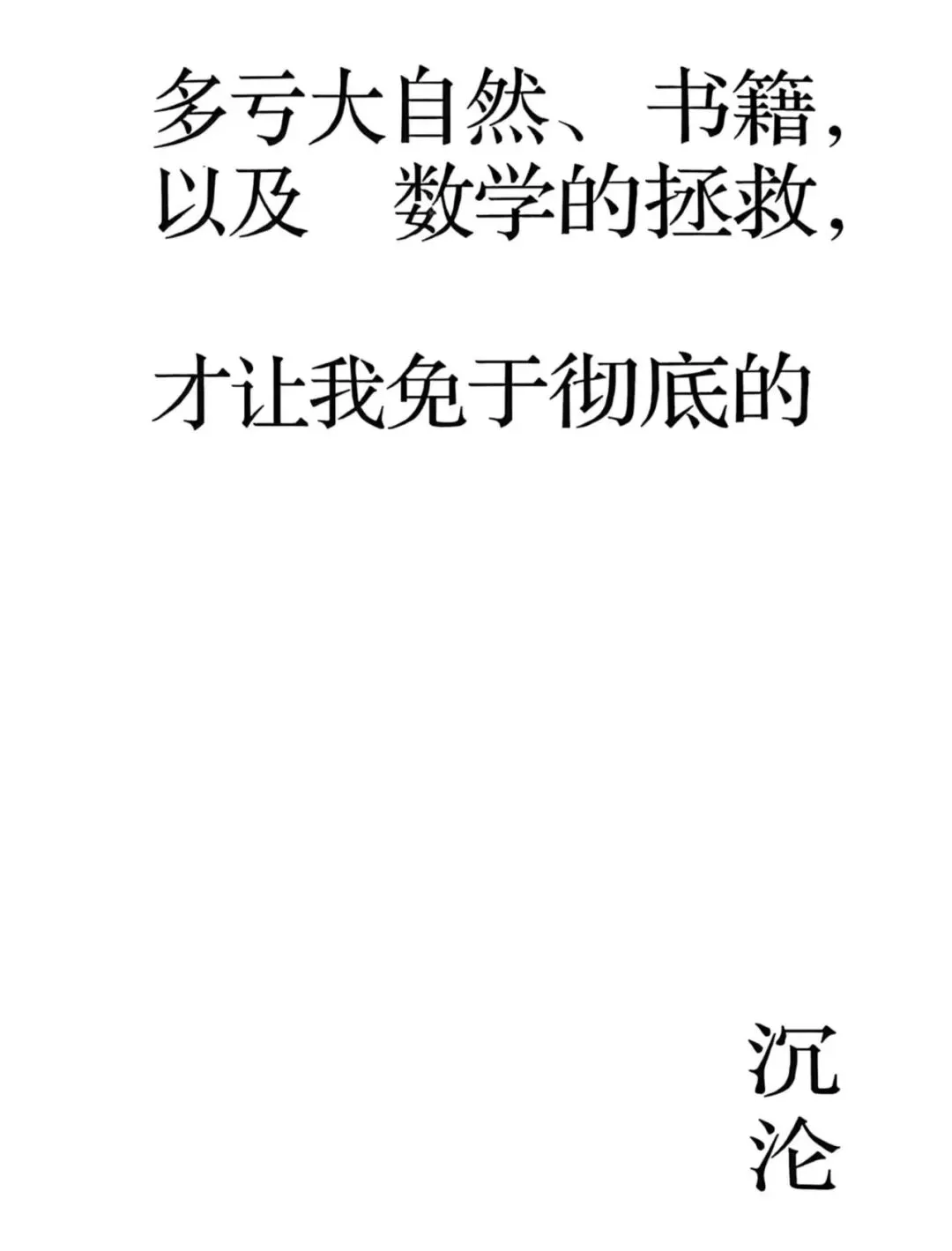 伯特兰.罗素在自传《我为谁而活》中写到:多亏大自然、书籍,以及数学的拯救,才让我免于彻底的沉沦。