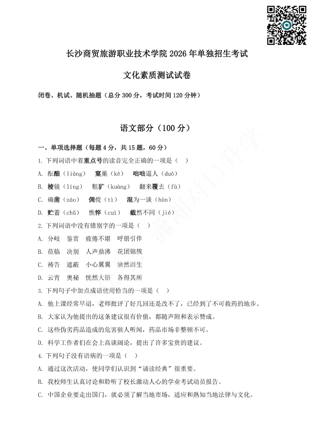 湖南单招考试题库(包含历年真题、模拟题以及各种专业类型的练习题库)