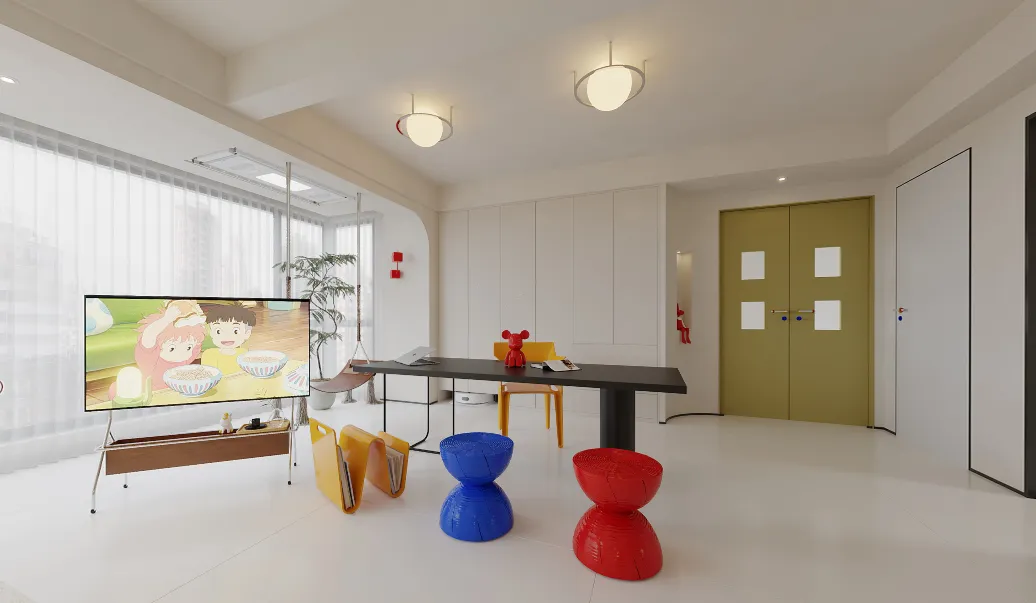 傍晚窝在奶白色的沙发里,看一部老电影,落地灯的暖光裹着整个身体;朋友来聚会时,长桌和彩色矮凳一摆,就能从下午茶聊到深夜。