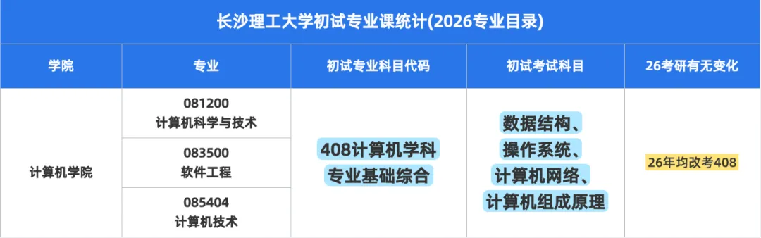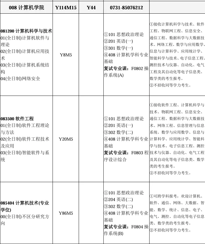 长沙理工大学081200计算机科学与技术、083500软件工程、085404计算机技术初试科目包括101思想政治理论、201英语一/204英语二、301数学一/302数学二、408计算机学科专业基础。