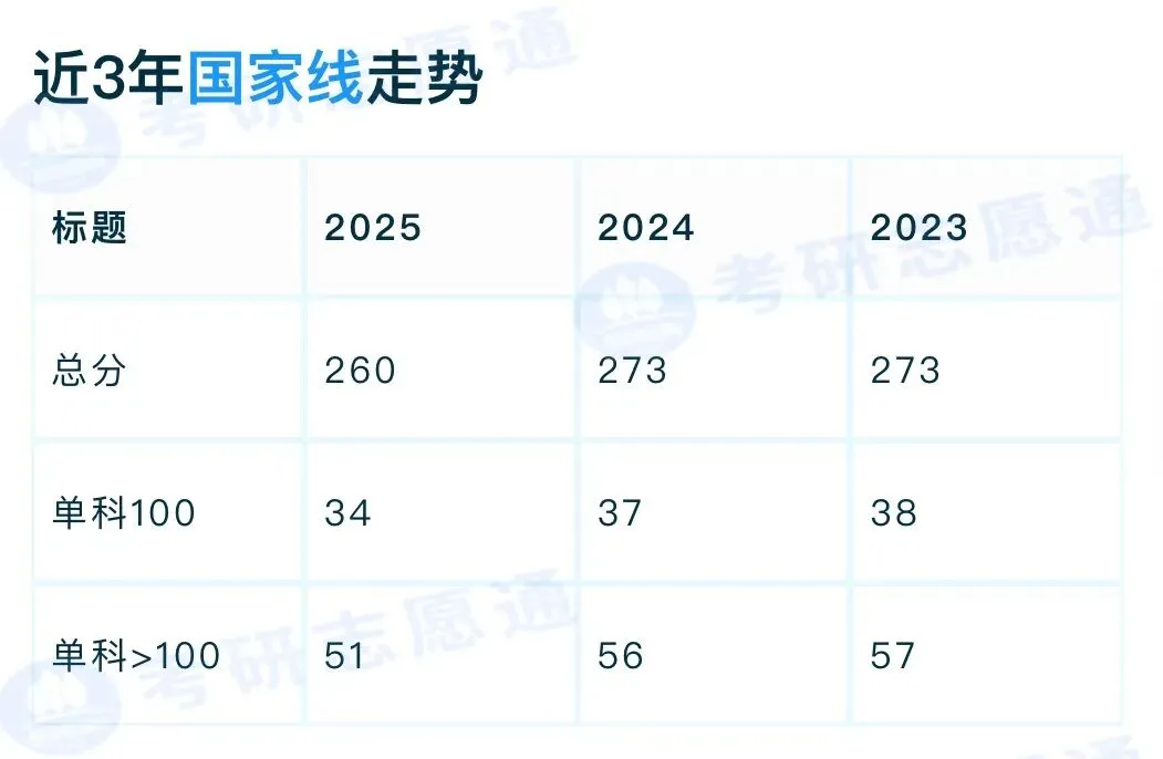 计算机专业考研2023-2024年国家线稳定在273分(单科38/57)。2025年出现重大转折:总分骤降13分至260分,单科线同步下调至34/51分。这表明考试难度或招生政策可能发生变化,对考生是利好。但备考26考研需注意:国家线仅为最低门槛,长沙理工大学实际复试线通常远高于此,务必以历年录取平均分为准制定备考计划。