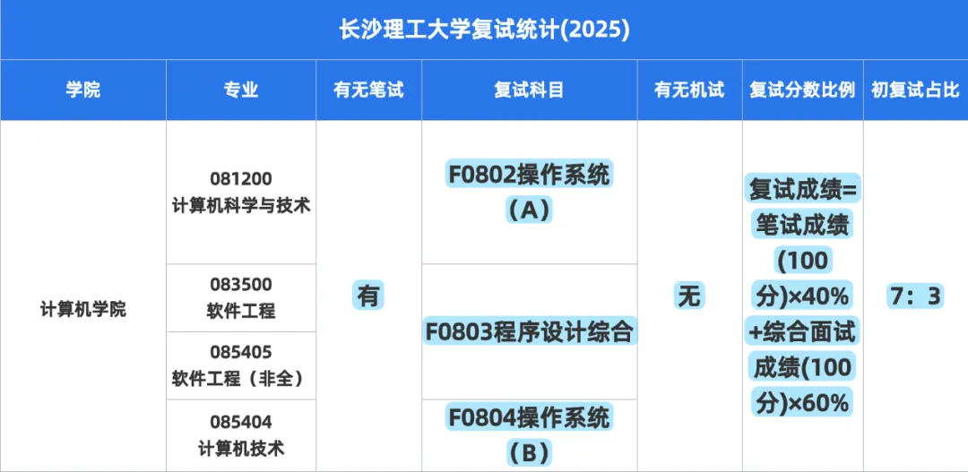 2.录取人数:20025年考研计算机科学与技术录取9人,进入复试11人,计算机专业录取95人,进入复试120人,复录比分别是1:1.2和1:1.3
