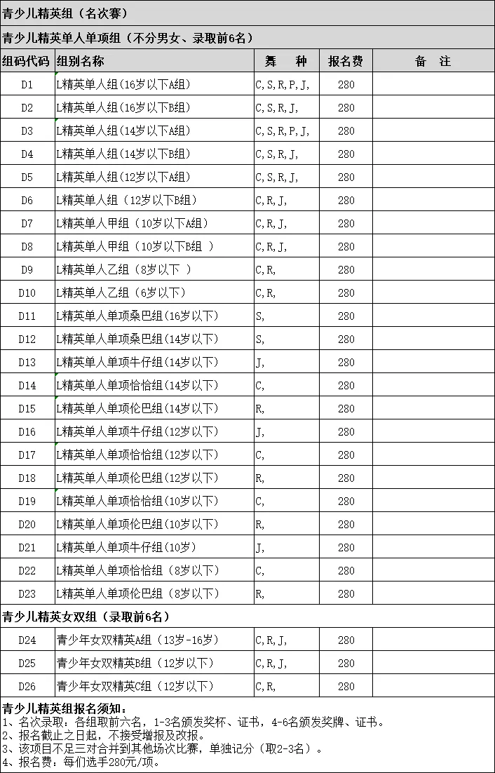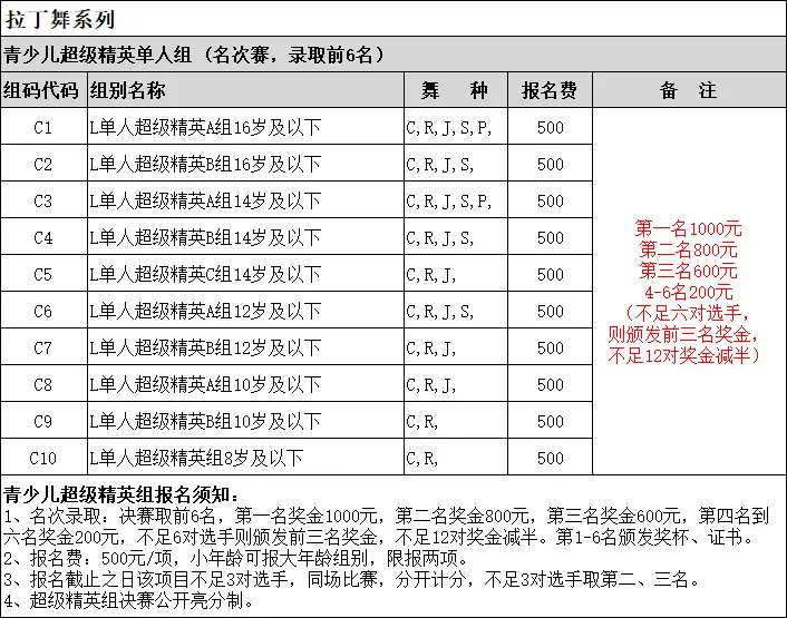 九、拉丁舞12岁及以下组别,服装要求如下:
