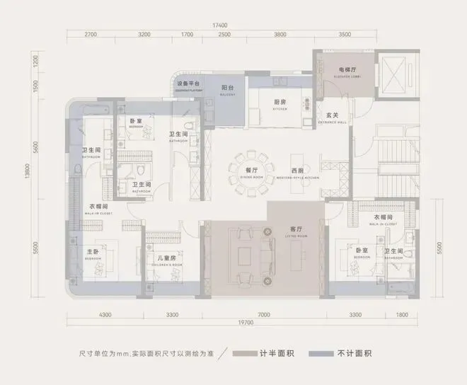 户型:建面约129–236㎡,纯改善,3.3 米层高、私梯入户、得房率约 112%,主城改善稀缺。