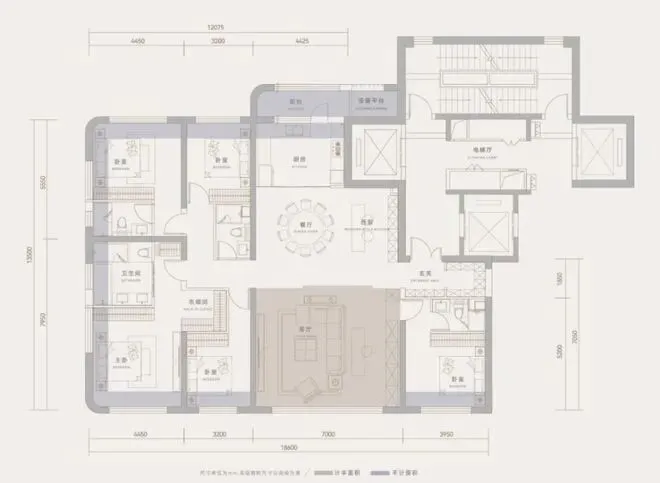 采用 3 梯 2 户奢配,独享约 15㎡独立电梯厅,归家仪式感与私密性拉满;空间使用率高达约 106%,含电梯厅在内套内面积可达约 250.16㎡,实用率十分出众;规划 5 房 3 套卧格局,客餐厨一体化面积约 96㎡,尺度开阔,居住舒适度极高。户型不足: