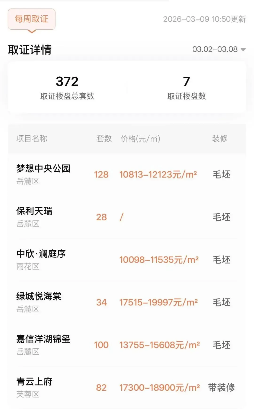 上周7盘取证,嘉信洋湖锦玺江景户型加推