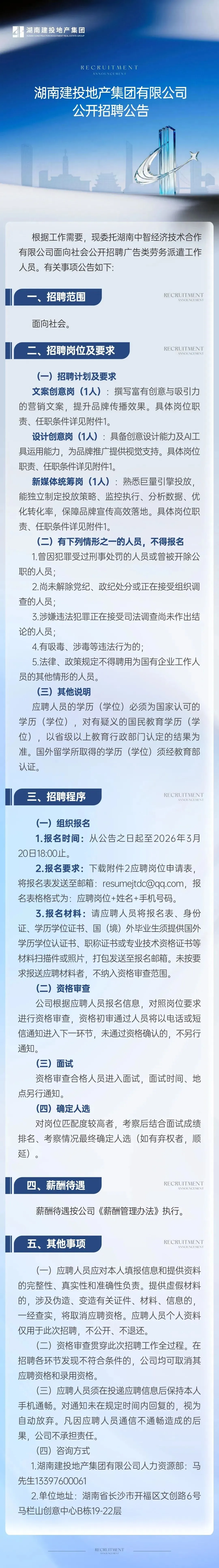 【长沙】省属国企,湖南建投地产集团公开招聘公告(3月20日截止)