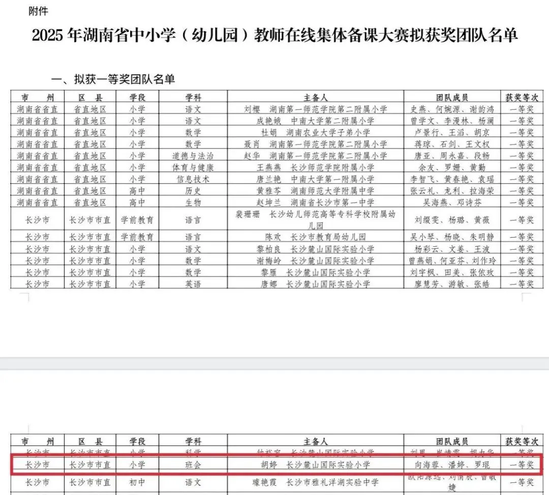 团队荣获2025年湖南省在线集体备课大赛一等奖。