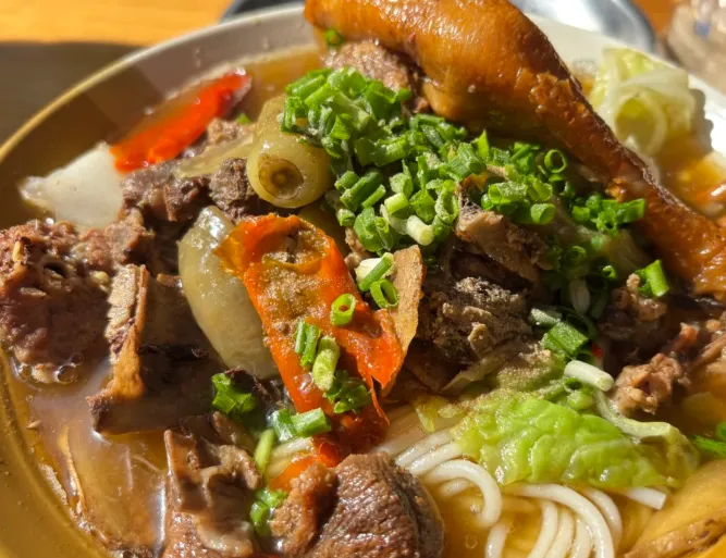 了,你会记住两个意象:一声悠长的汽笛,和一碗红彤彤的米粉。当汽笛声在山谷里回荡,你坐在路边的小板凳上,把最后一口粉汤喝干,整个人就像被扔进了温水里,慢炖着。那种紧绷的神经,就在这辣味和回声里,一点点松开了。你会觉得,不需要去追赶什么,当下的这份松弛感,刚刚好。