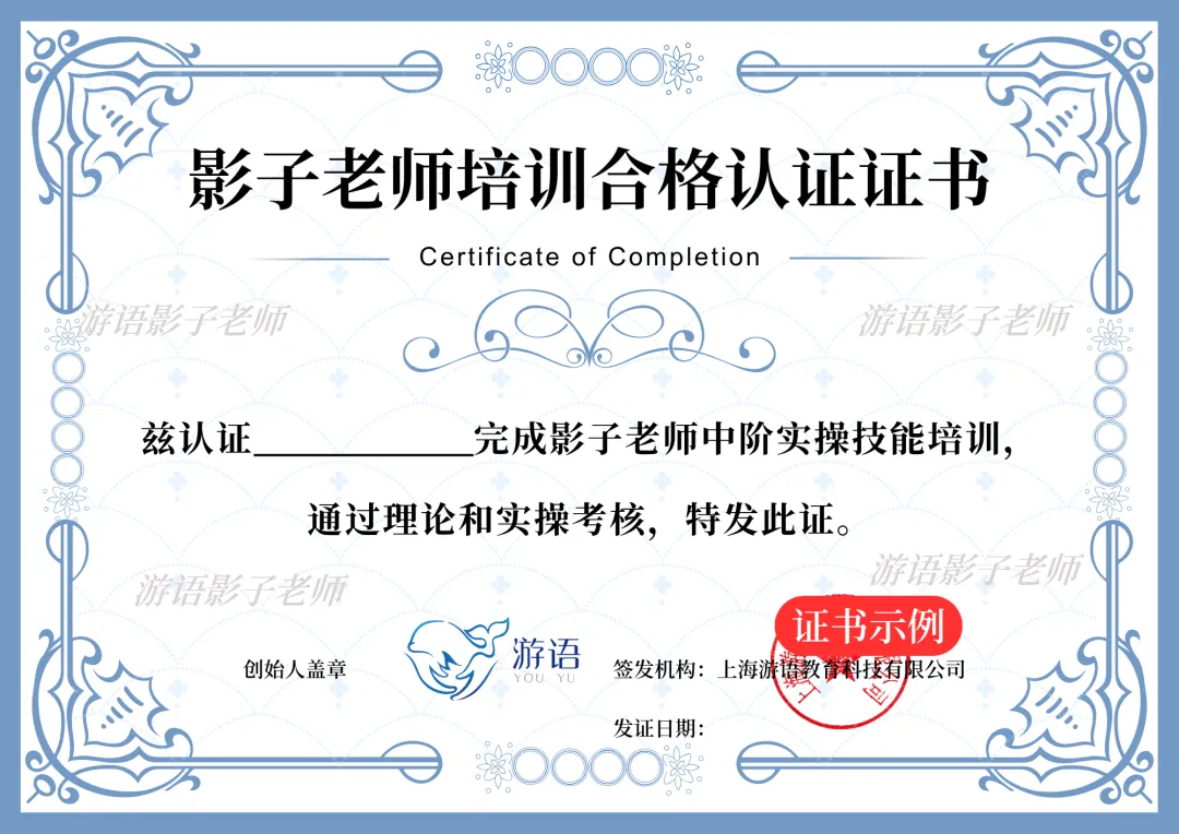 完成线下技能实训并通过实操考核,将获得【影子教师中阶实操技能培训合格认证证书】。