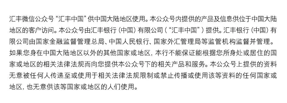 Should you have any questions to the above, please contact your relationship manager or call HSBC 24-hours Customer Service Hotline at 95366, Commercial Banking Service Hotline at 4008218878. Meanwhile, you could do your banking using the HSBC China WeChat service account (HSBC China customer service), HSBC China mobile banking, HSBC China personal internet banking or other self-service terminals. We are delighted to be at your service.