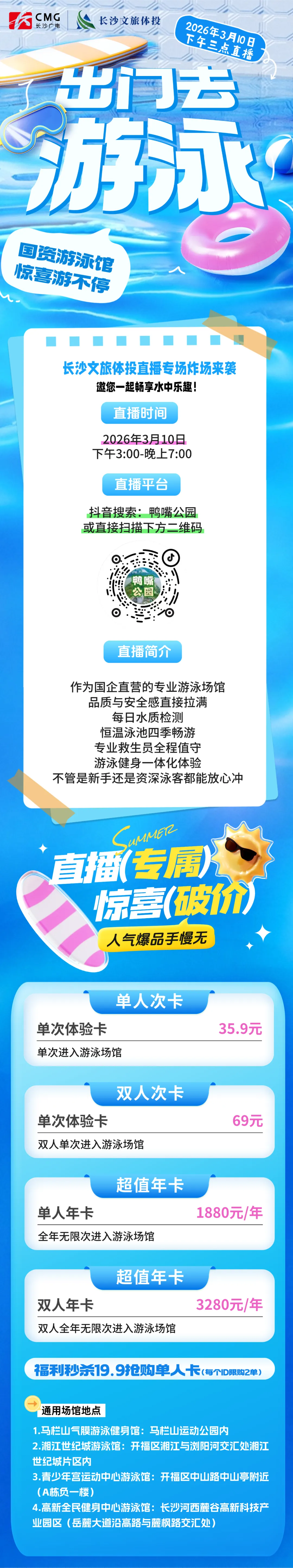 长沙人游泳福利来啦,明天下午 3 点准时开抢!