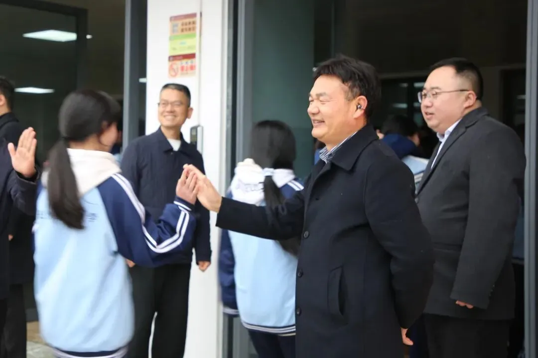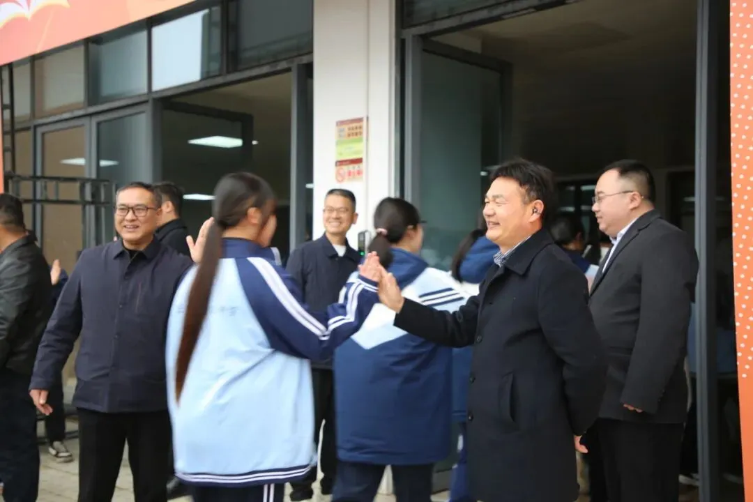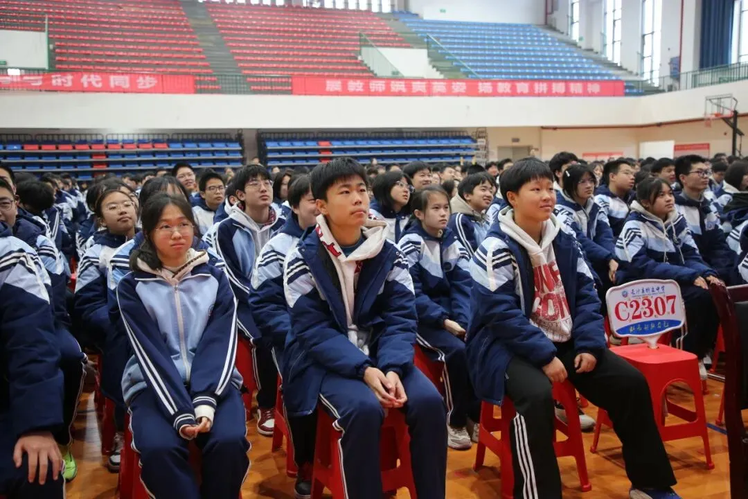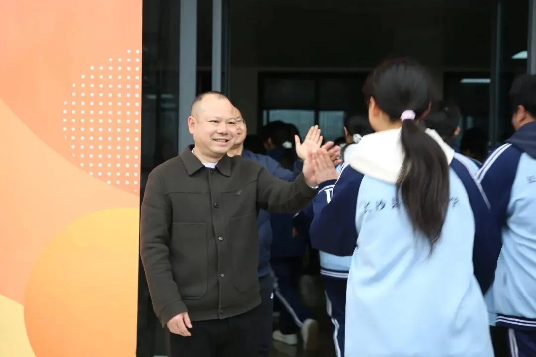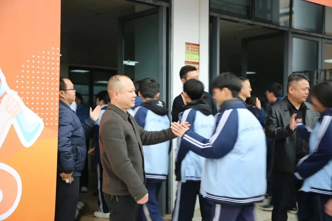 击掌为誓,传递力量。活动开始前,体育馆西门出现了一道独特的风景线:全体行政领导、九年级任课教师及家长代表分列两侧,面带微笑,伸出双手。九年级各班学生在班主任的带领下,排着整齐的两列纵队,依次从中间通道步入会场,与身旁的师长、家长掌心相触,每一次击掌,都是一份温暖的鼓励;每一次相触,都是一腔真挚的期许。