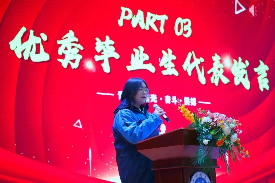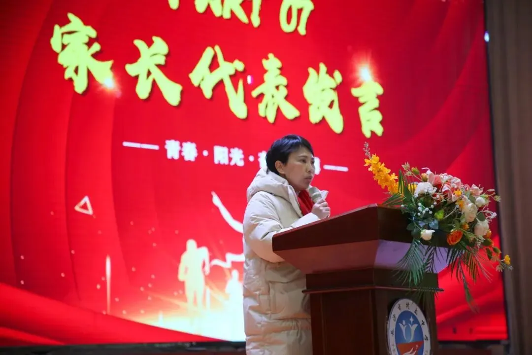 成长的旅程中,父母的爱始终是最温暖的底色。家长代表 2303 班罗誉天妈妈登台发言,以家长的视角,诉说着对孩子们成长的欣喜与期盼。她告诉孩子们,成长从不是孤军奋战,父母永远是孩子们最坚实的靠山,愿孩子们带着家人的爱与期盼,勇敢前行,在成长的道路上收获属于自己的精彩。