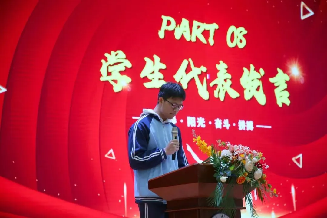少年意气,风华正茂。九年级学生代表 2301 班吴林炜同学上台发言,他代表全体九年级学子诉说青春的心声,表达了对成长的感悟、对师长与父母的感恩,更展现出特立少年怀揣梦想、奋勇前行的青春姿态,让现场感受到了少年们的蓬勃朝气与奋进力量。