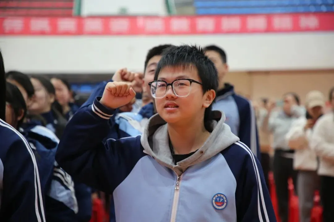 誓言铮铮,青春向党。在 2309 班肖彦廷同学的带领下,全体九年级学子起立,高举右拳,庄严宣誓。每一句誓言,都铿锵有力;每一个眼神,都坚定执着。这是少年们对自己成长的承诺,是对未来的期许,更是对青春的告白。