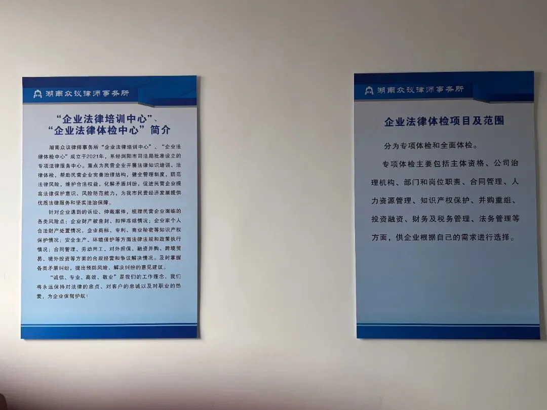 2021年,我所经浏阳市司法局批准成立“企业法律培训中心”、“企业法律体检中心”,为本地企业量身打造法律培训、风险体检服务,助力企业完善治理、防范风险,为浏阳经济发展保驾护航;常年为浏阳城建投资公司、庆泰烟花、东信烟花、浏阳市人民医院等政企单位提供专业法律顾问服务,以专业能力化解法律纠纷,维护当事人合法权益。
