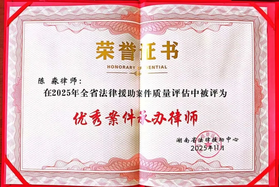 全所律师积极履行法律援助职责,其中陈淼、刘玮瑶律师在2025年全省法律援助案件质量评估中被评为“优秀案件承办律师”;