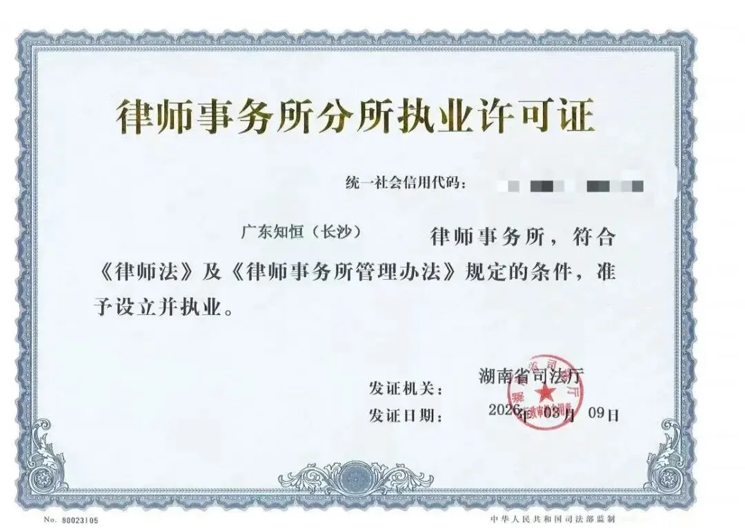 2026年3月9日,经湖南省司法厅批准,知恒(长沙)律师事务所顺利完成设立审批流程,正式落户长沙。此次知恒(长沙)律师事务所的获批设立,是知恒律师事务所推进全国战略布局的重要举措,标志着知恒在中部地区法律服务市场的布局迈出关键一步,也为长沙法律服务行业注入了新的活力。