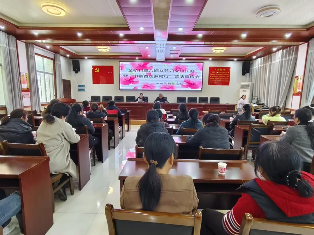3月6日,高桥镇金桥村妇联召开妇女组长会暨普法宣传会,围绕妇女权益保障法、反家庭暴力法等开展宣讲。
