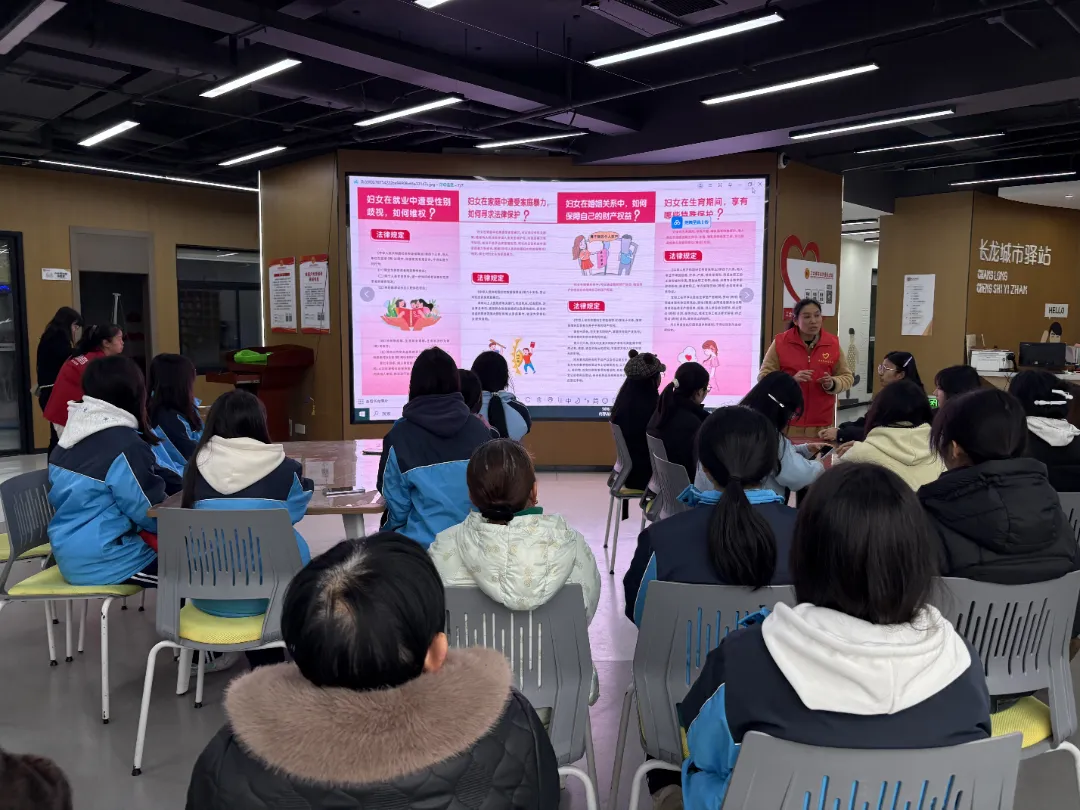 3月8日,长龙街道妇联联合司法所在长龙驿站围绕婚姻家庭、财产继承、劳动就业、反家庭暴力等妇女群众关心的热点问题进行了普法宣传。