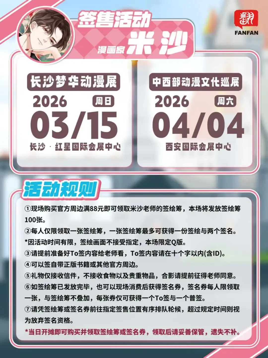 长沙 · 梦华动漫展时间:3月15日(周日)12:00~15:00地点:长沙红星国际会展中心西安 · 中西部动漫巡展时间:4月4日(周六)11:30~15:00地点:西安国际会展中心
