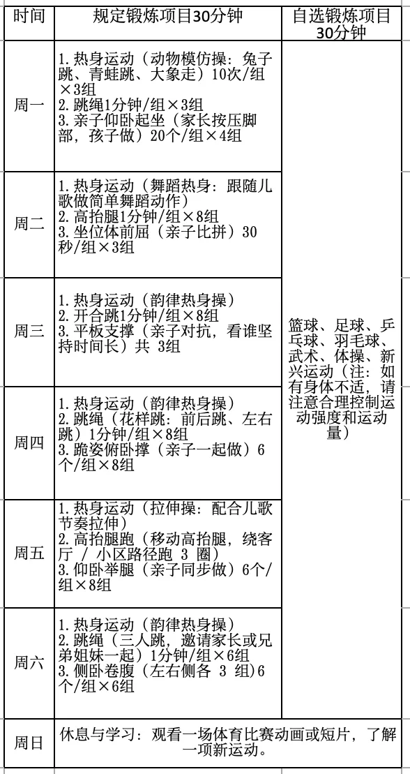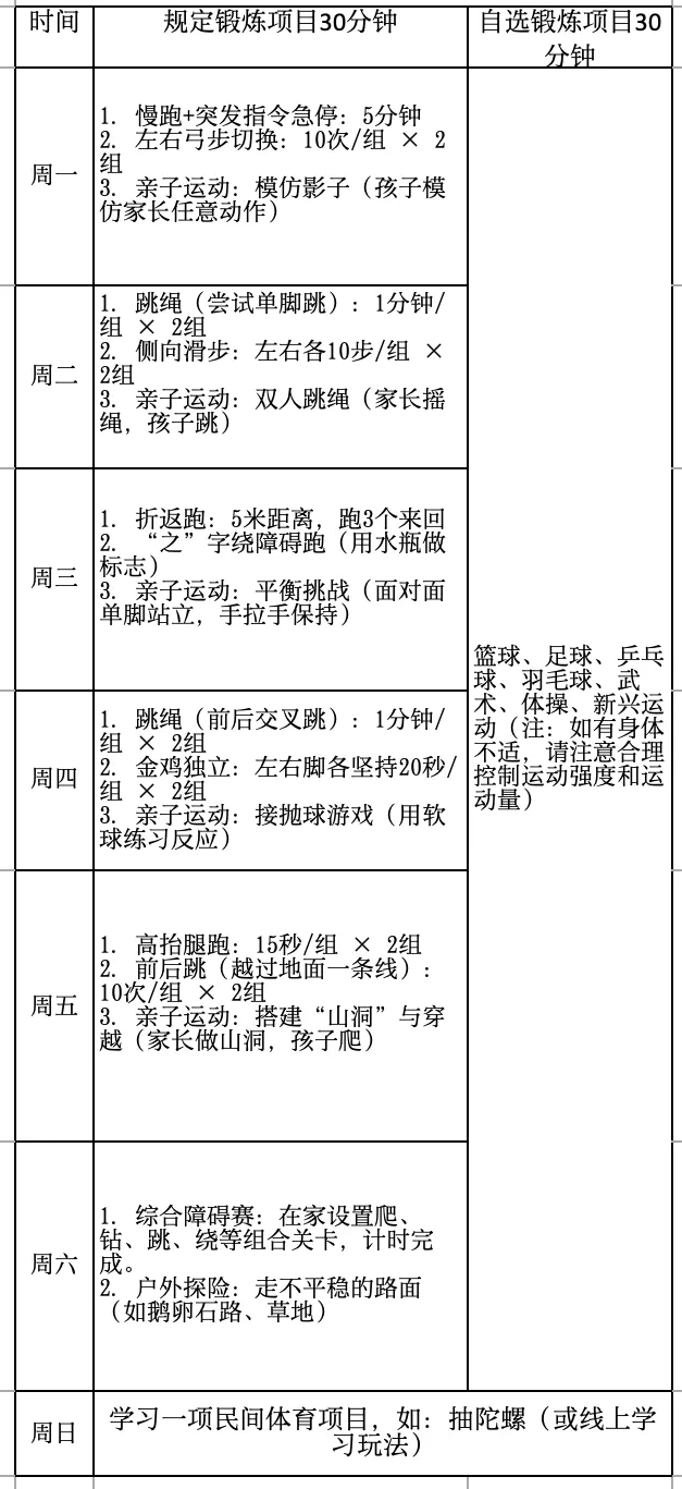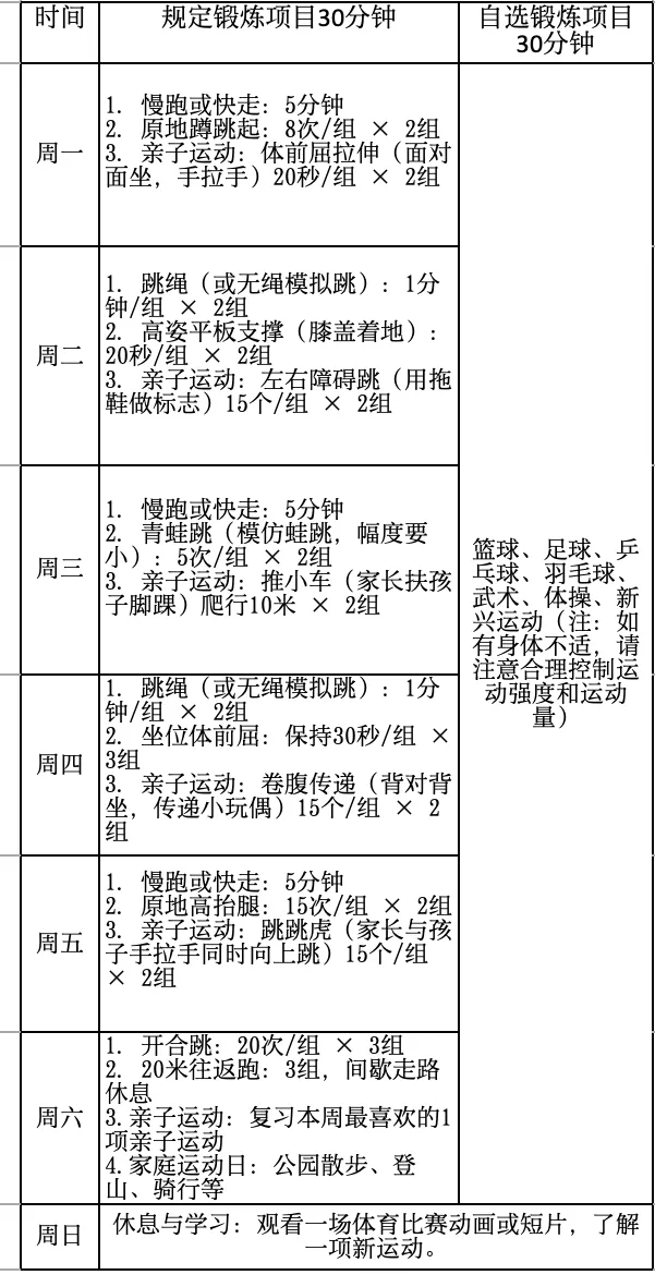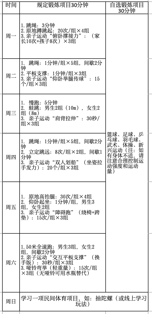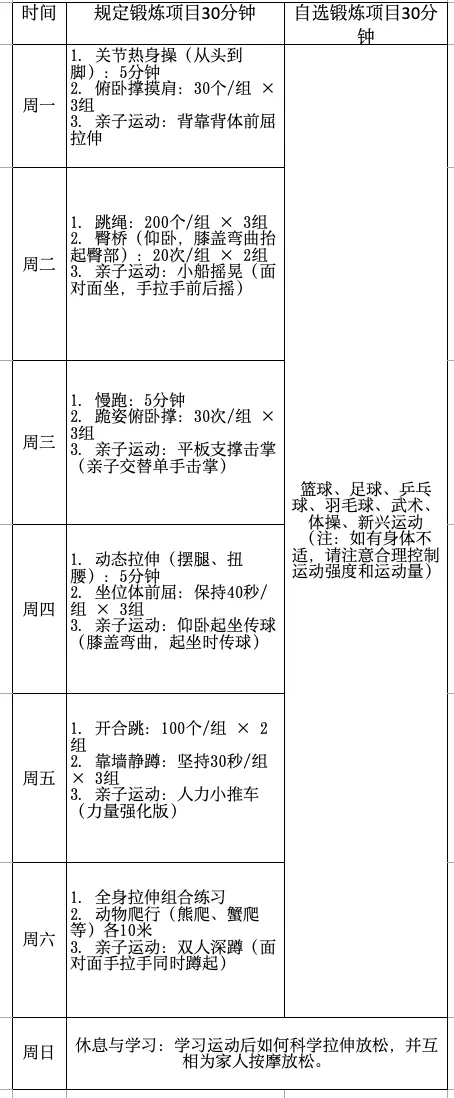 为贯彻落实“健康第一”的教育理念,让运动成为孩子受益终生的习惯,我校“活力家庭,‘育’见成长” 月度家庭体育作业计划正持续推进,现发布3月份月度家庭体育作业!