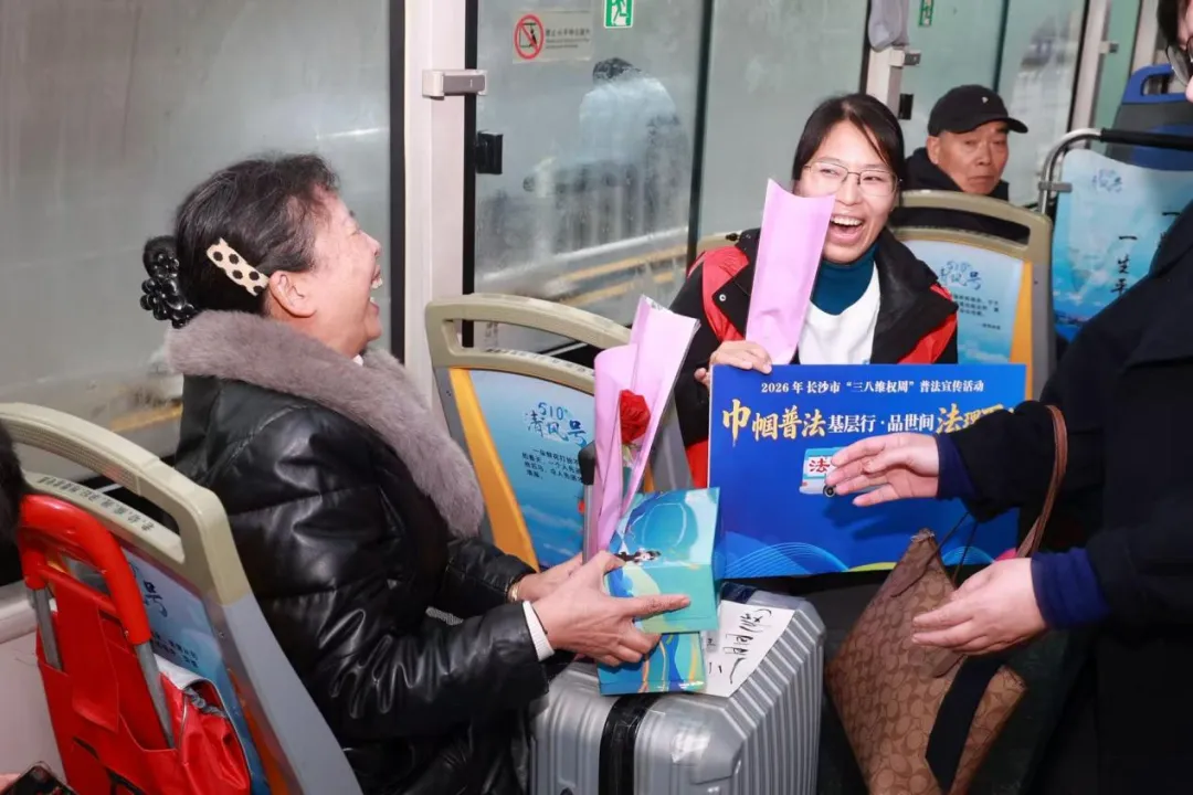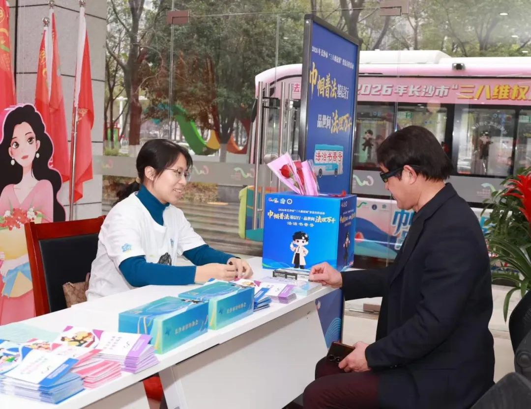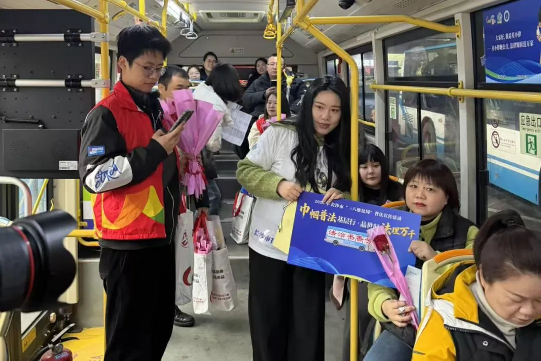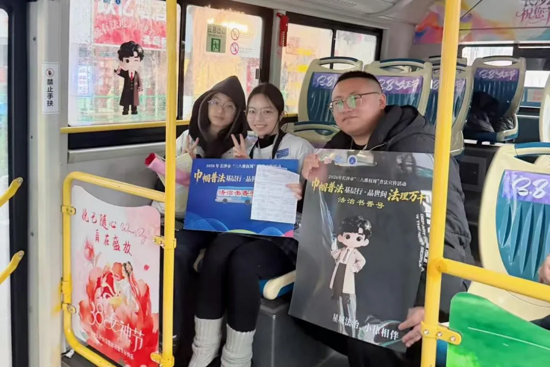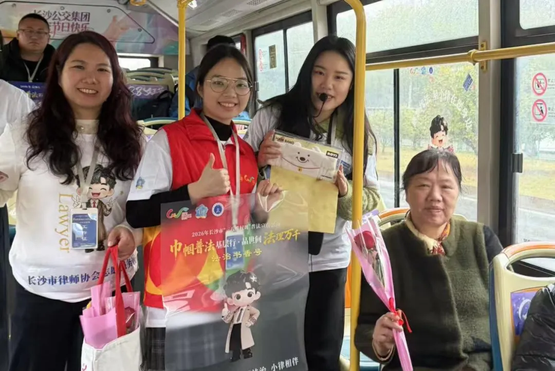 3月8日下午,由长沙市律师协会承办的“巾帼普法基层行·品世间法理万千”三八维权周系列活动迎来重磅环节——星小律专列“法治书香号”公交普法活动正式启程。长沙市律师协会组织60余名专业律师志愿者组成“公交普法志愿服务团”,与行业IP形象“星小律”一同登上公交站点与车厢,将法律知识送进市民的日常出行路。