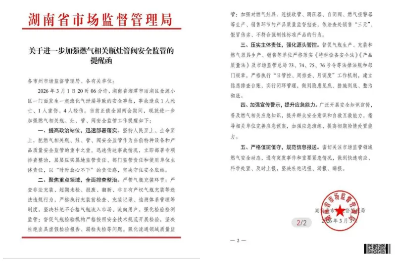 会议首先通报了近期省内两起气瓶安全事故:3月1日,湘潭市雨湖区金源小区一门面发生一起液化气泄漏导致的安全事故,事故造成1人死亡、1人重伤、4人轻伤。3月5日,株洲一充装站发生氩气瓶物理爆炸事故,造成至少1人死亡。