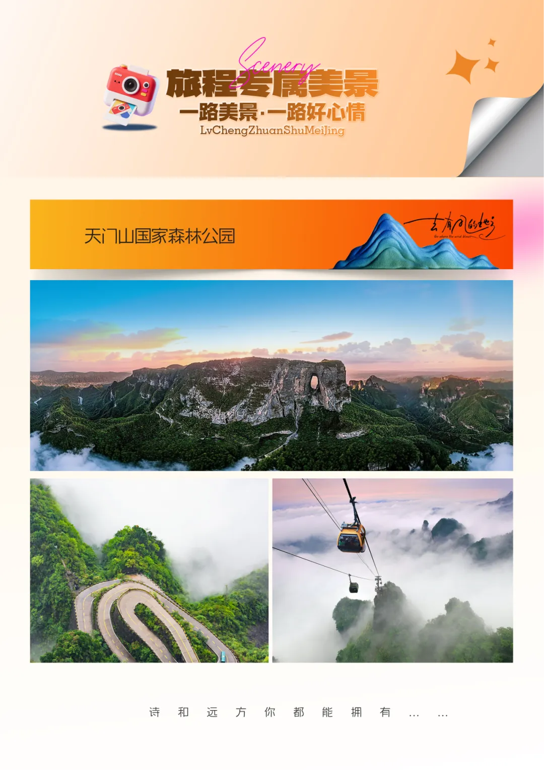 温馨提示:天门山景区游览线路分为双索道A,B,C三条路线,价格相同,具体游览线路不能指定,最终以系统预约为准;