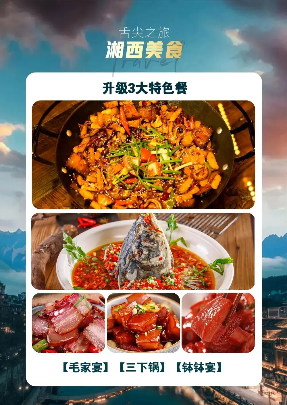 4)尊享湖南三大特色餐【毛家宴】+【张家界三下锅】 +【钵钵菜】