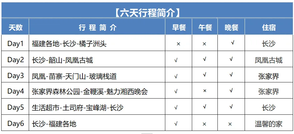 ◎因天气原因,景区限流等原因,特别是部分景点(天门山景区、韶山故居等)需提前3-7天预约,且游览时间及参观线路由景区根据当地实际情况智能安排,旅途中可能会对行程先后顺序做出调整,但不影响原定标准或减少景点。如遇人力不可抗拒因素造成行程要更改、延误、滞留或提前结束,本社负责协助解决或退还门票款,由此产生的费用自理,旅行社不负赔偿责任!