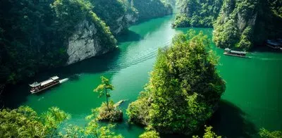v 宝峰湖——被誉为"人间瑶池",高峡出平湖,浮于半山腰。