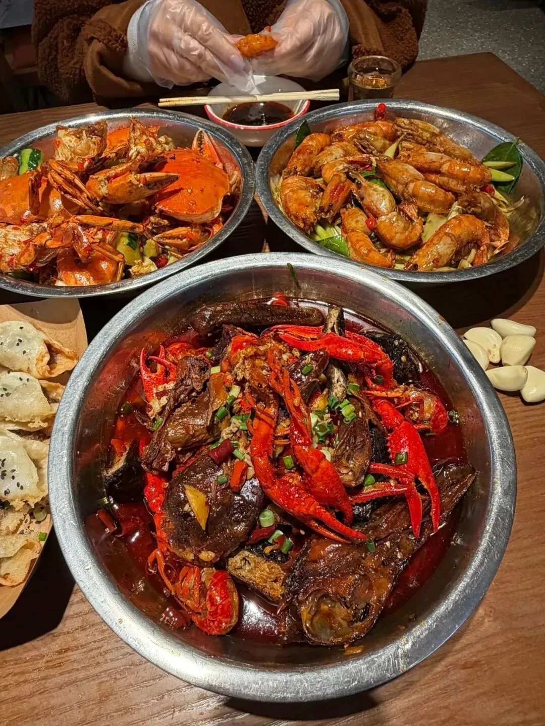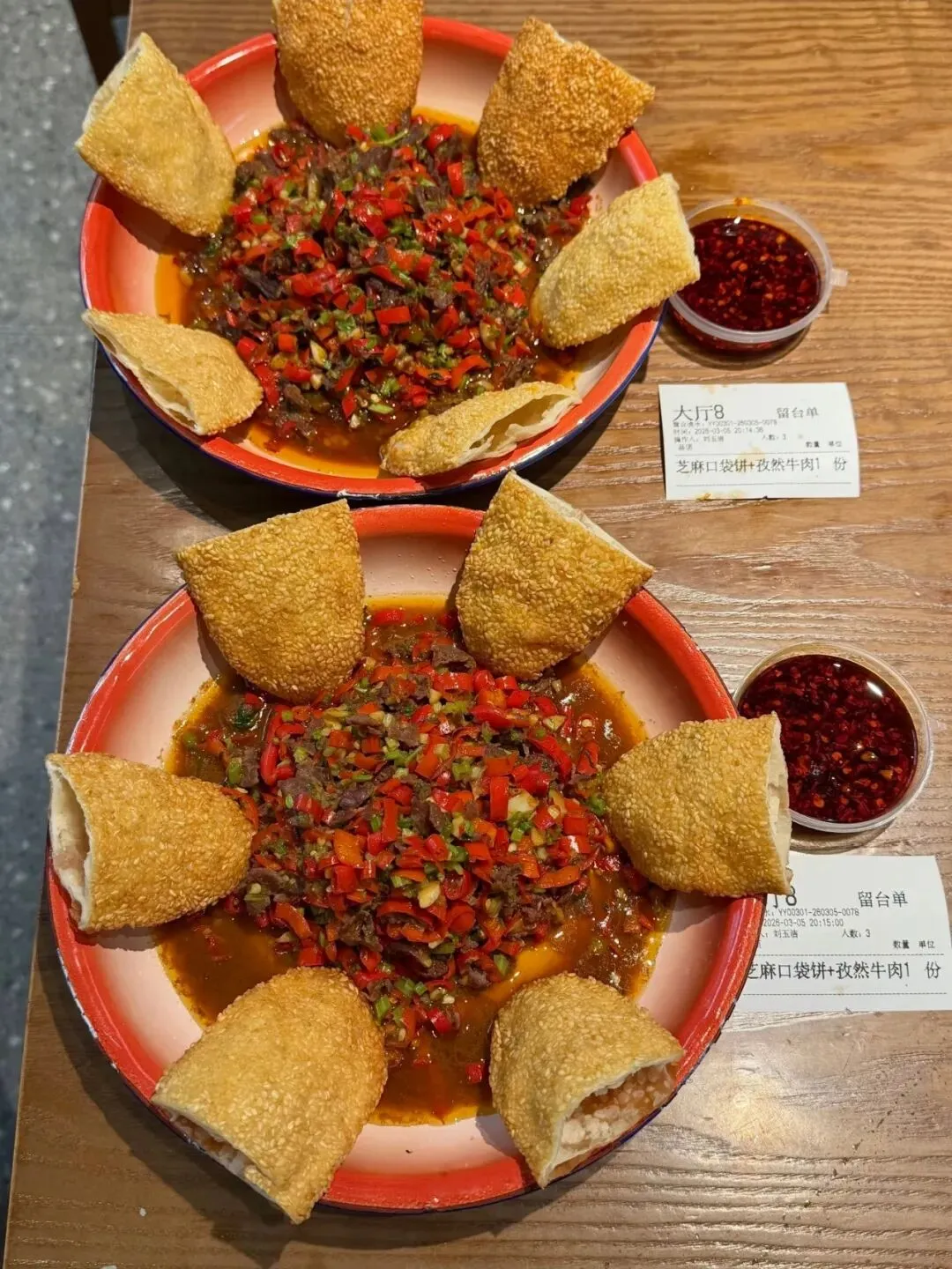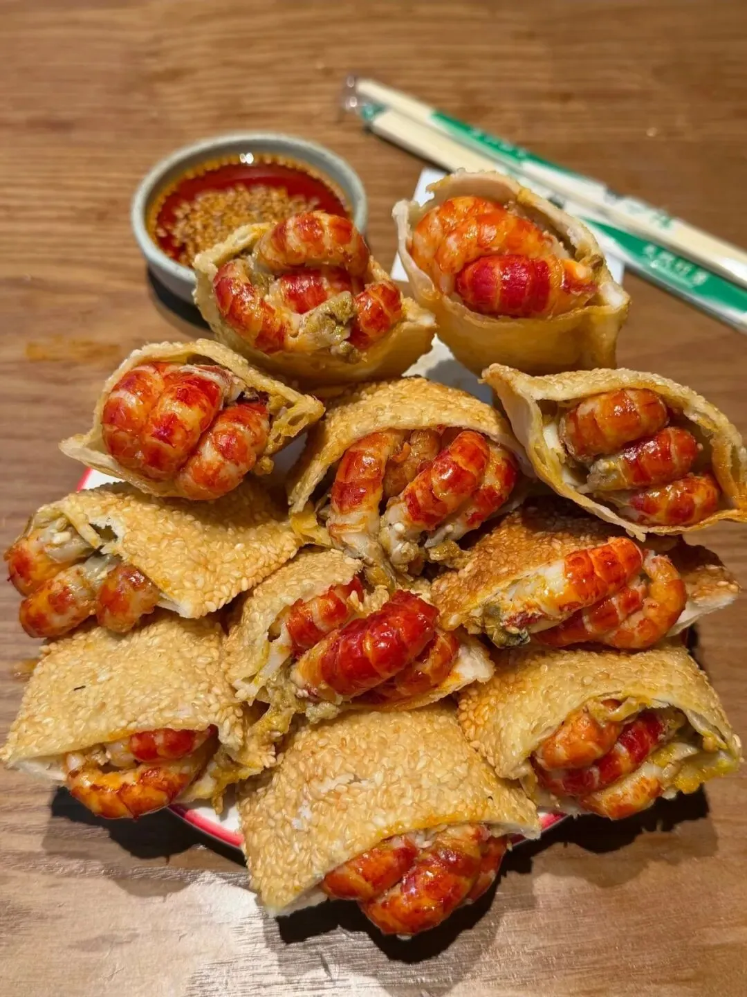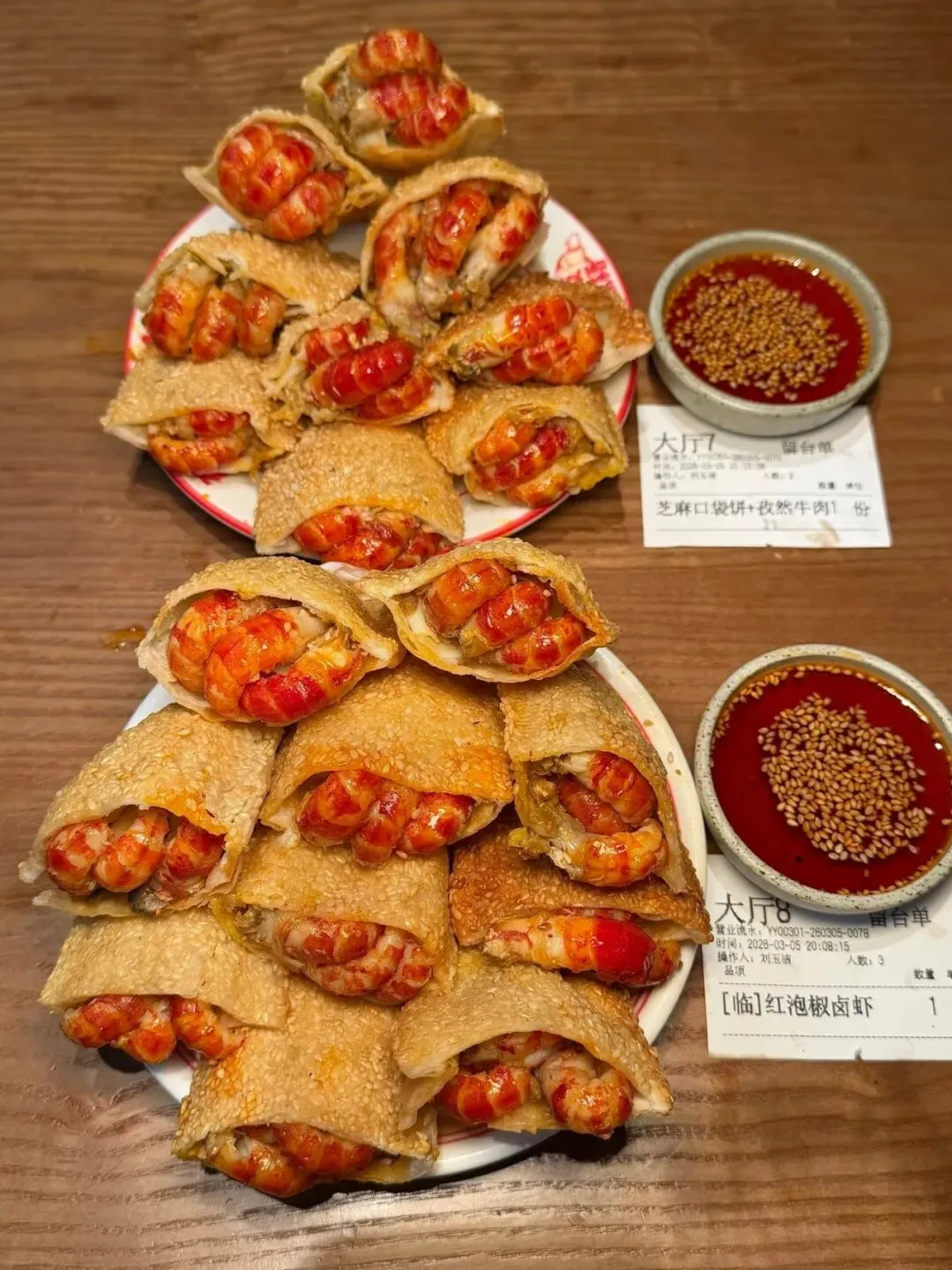 口袋馍夹泡椒卤虾,酥脆的外皮裹满鲜辣虾肉,根本停不下来。
