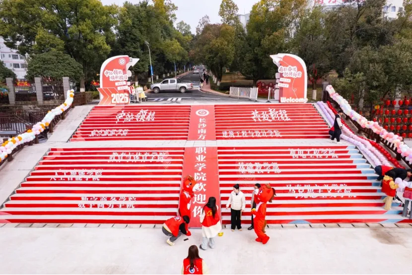 校园处处张灯结彩,暖意融融。阶梯上“中协领航 共赴新程”主题标语醒目亮眼,红灯笼与气球装点出浓浓开学氛围。学院吉祥物“南南”“职职”亮相迎新,志愿者与老师们热情守候,定格下一张张朝气蓬勃的青春笑脸。