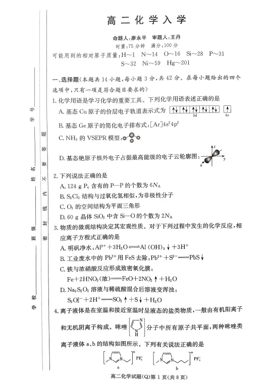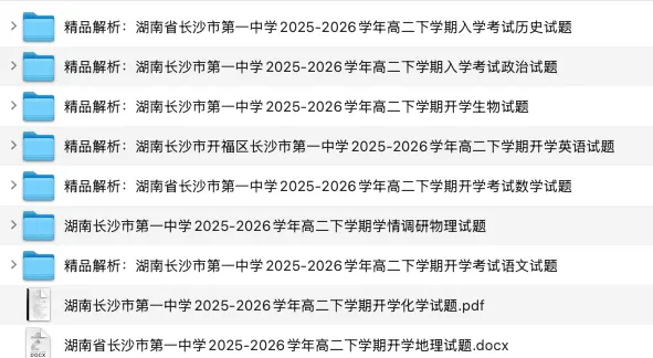 今天与大家分享的是一份「2026湖南省长沙一中2025-2026学年高二下学期3月入学考试」试卷。