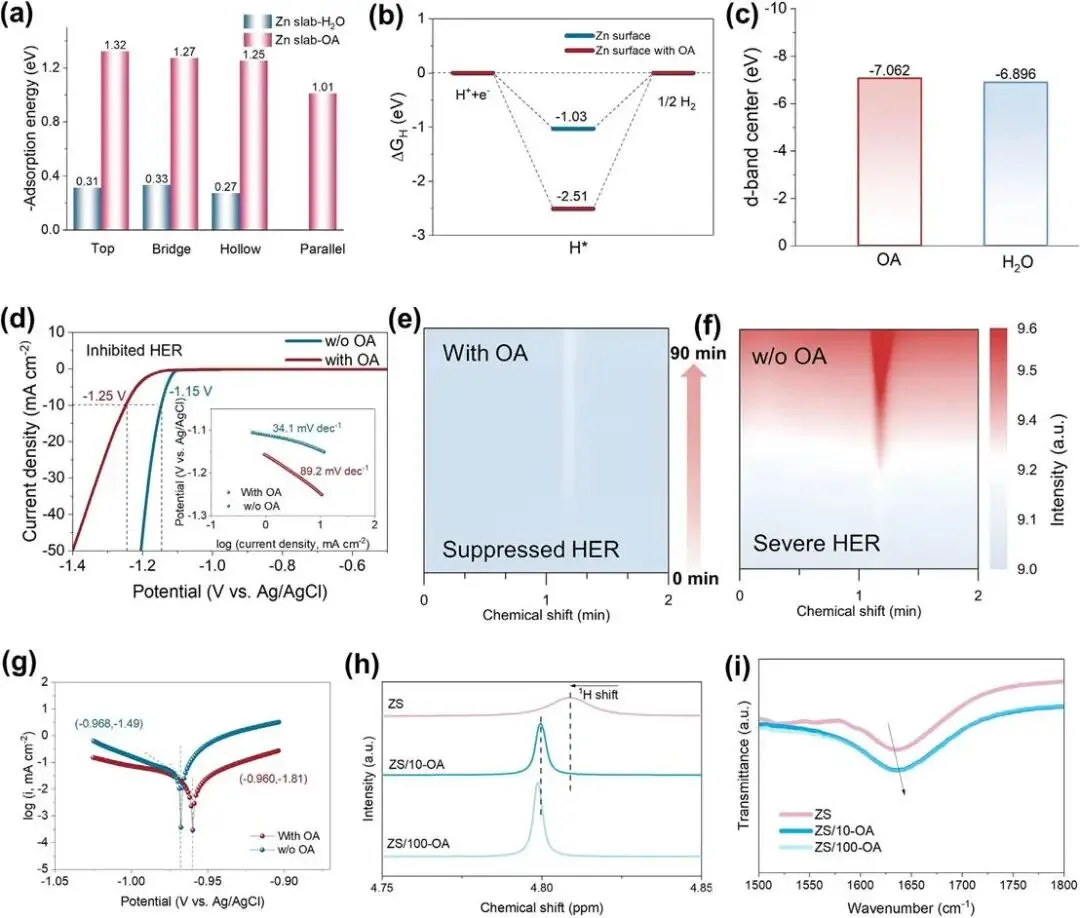 示意图1. 草酸调控锌负极电子结构与界面行为抑制析氢反应