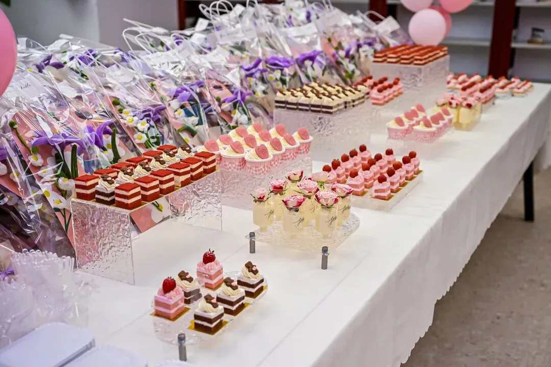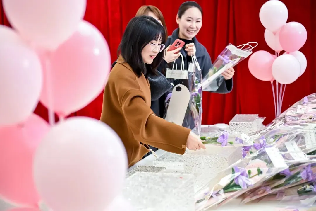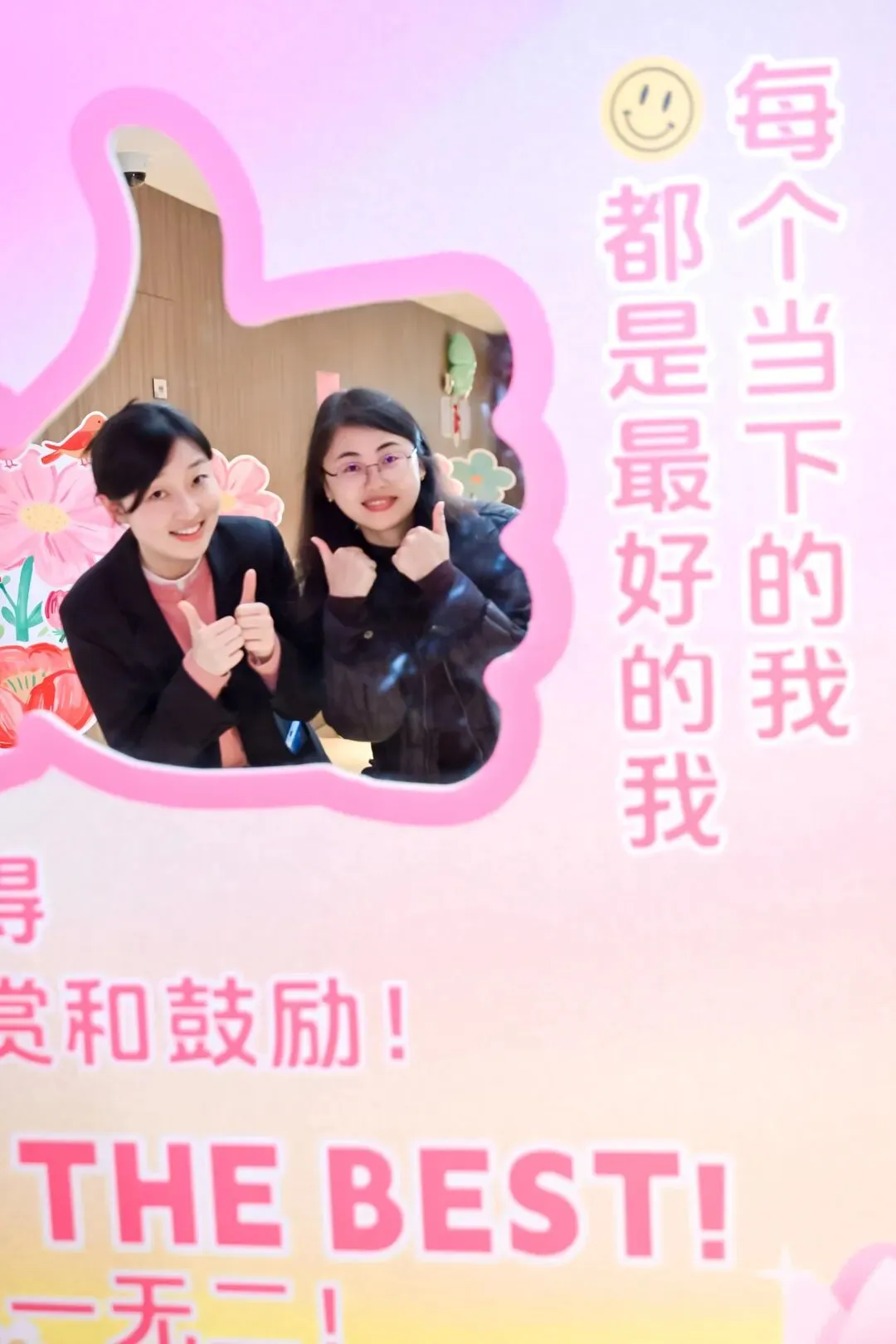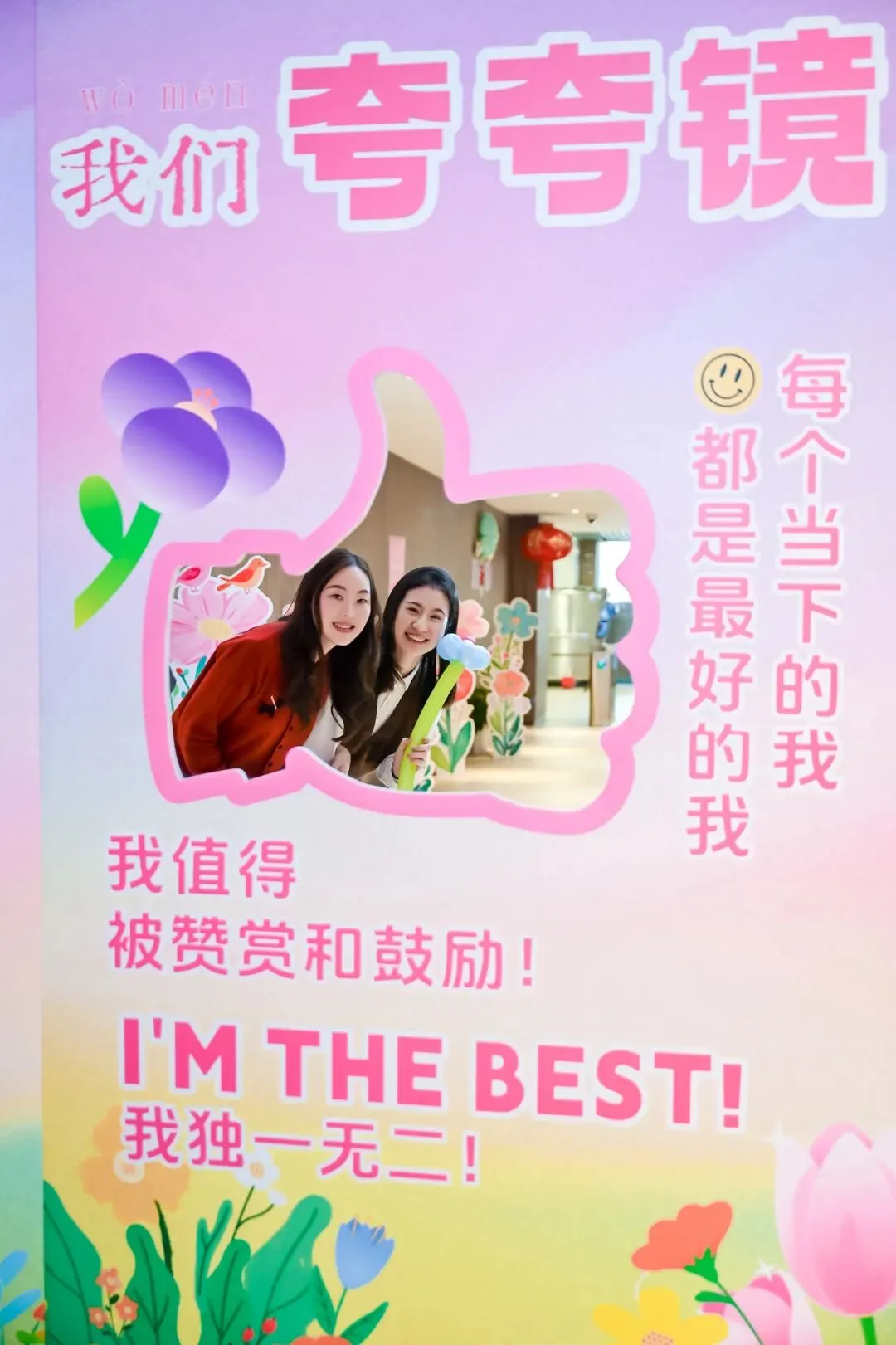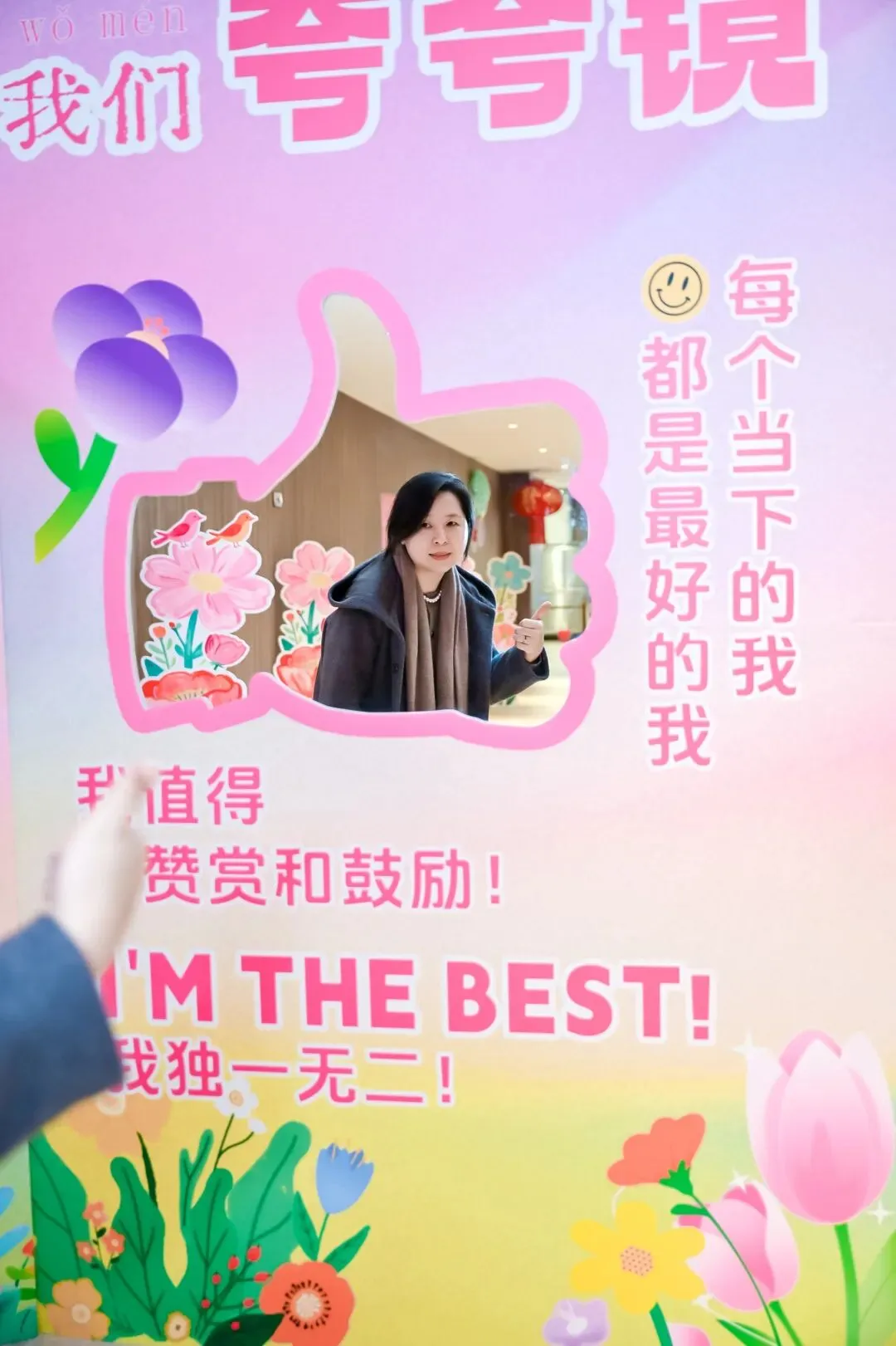 3月6日中午,分行活动开展区节日氛围浓厚,主题打卡区、甜品体验区及愿景互动区依次排布,为女职工们带来了集视觉、味觉与心灵感受于一体的春日美学体验。活动现场,大家手持手工定制扭扭花束,在精致的节日打卡墙前定格美好瞬间,用镜头记录花漾笑颜;在愿景互动区的“夸夸镜”前,女职工们纷纷展示对未来的美好期许和对自己的真诚赞美,尽显新时代女性的自信与风采,现场欢声笑语不断,暖意融融。