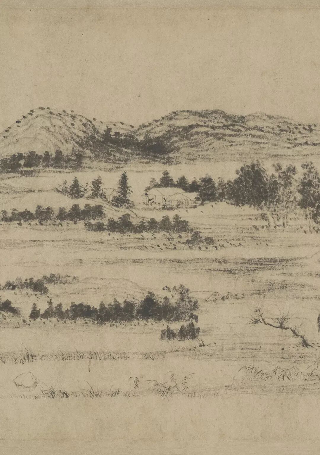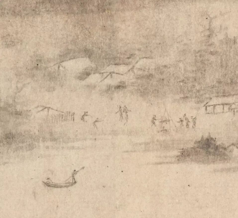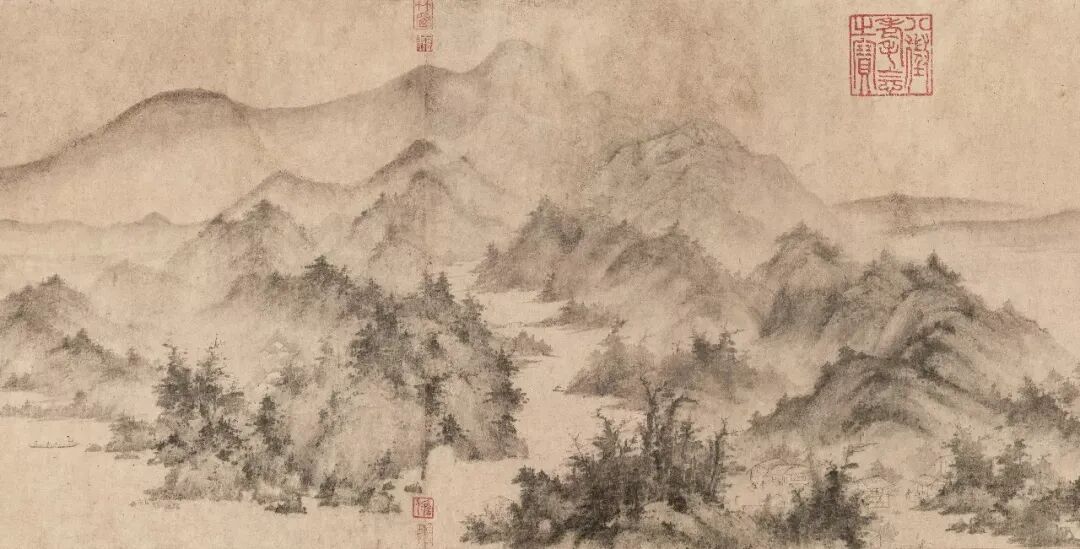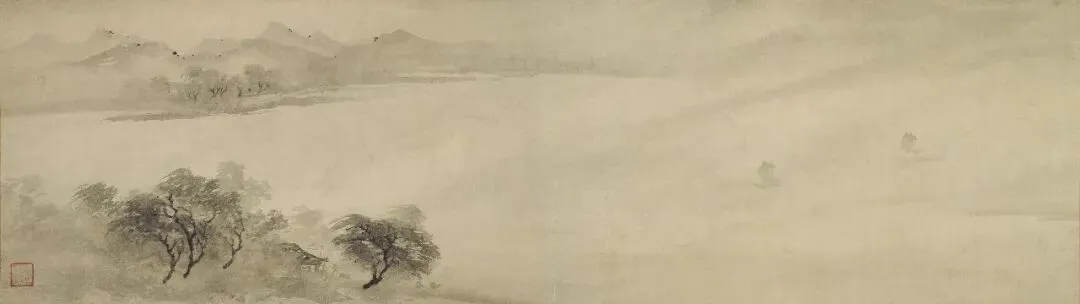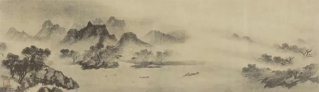 南宋 舒城李平(旧传李公麟)《潇湘卧游图卷》(局部)现藏于东京国立博物馆。被誉为南宋山水画第一神来之作。此卷是南宋云谷圆照禅师委托李氏所画,以方便躺于床榻之上也能欣赏潇湘美景,故名为「卧游」。