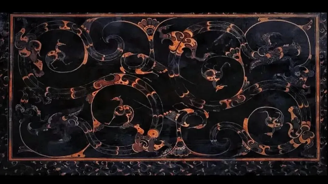 黑地彩绘识文描漆棺,1972年出土于湖南长沙马王堆1号西汉墓,现藏湖南省博物馆