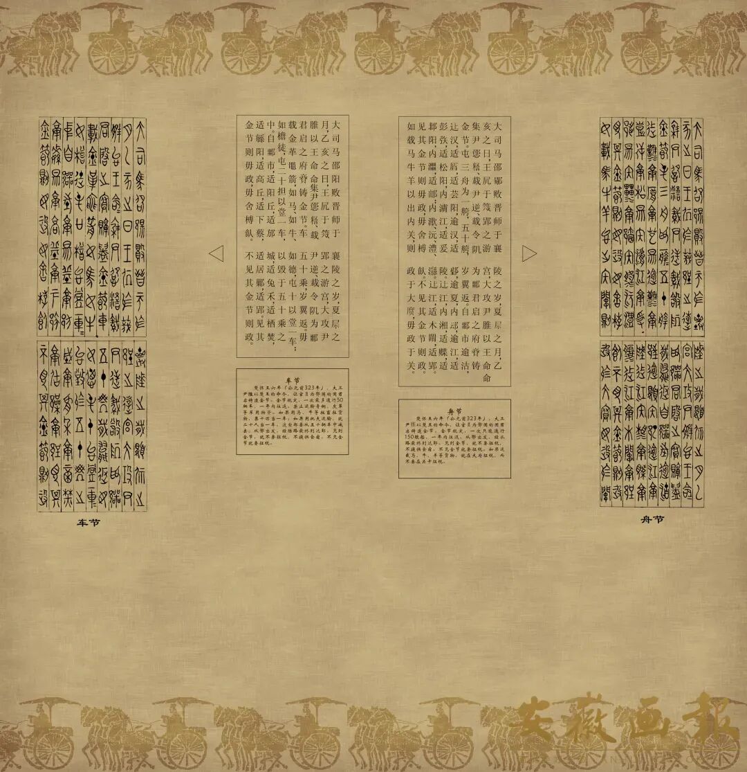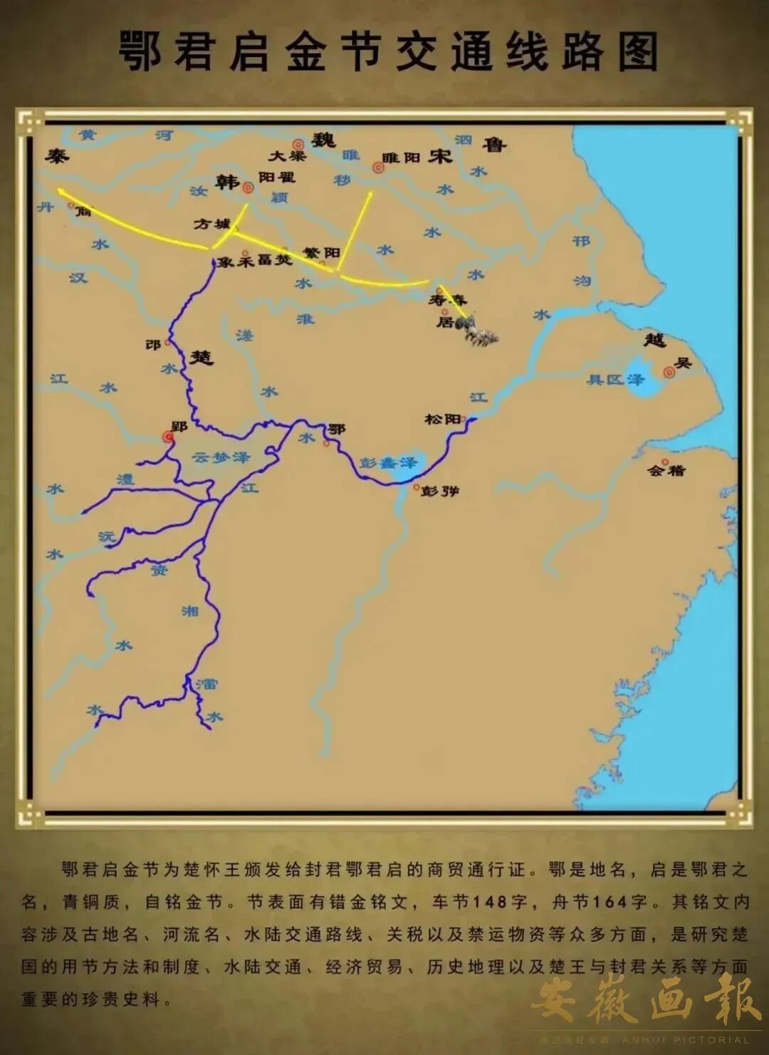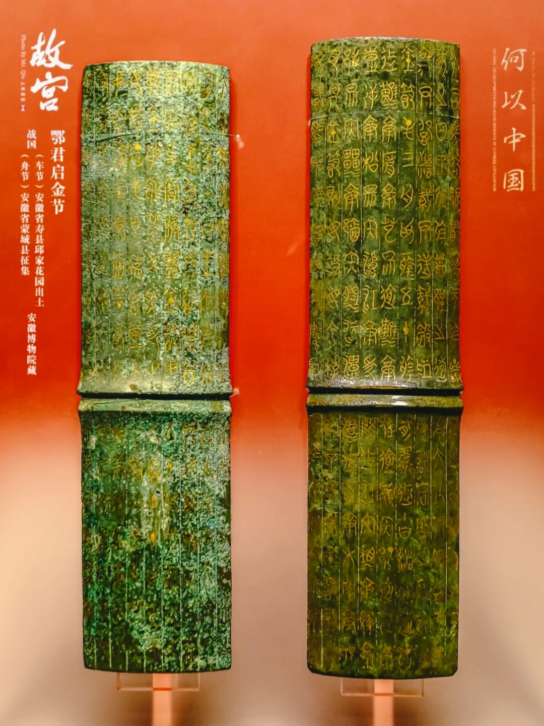 鄂君启错金青铜节,铸制于战国中期楚怀王六年(西元前322年)楚怀王颁发给鄂君启的水陆舟车免税通行证。1957年安徽寿县邱家花园出土 安徽省博物馆藏