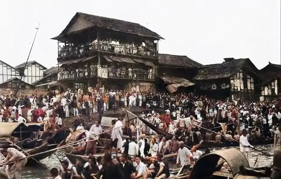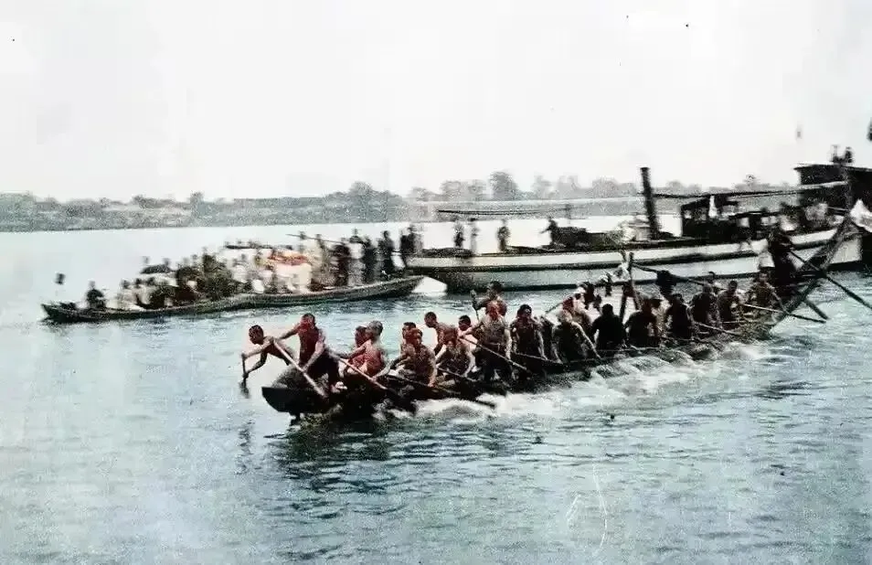 1930年湘潭 湘江边观看赛龙舟